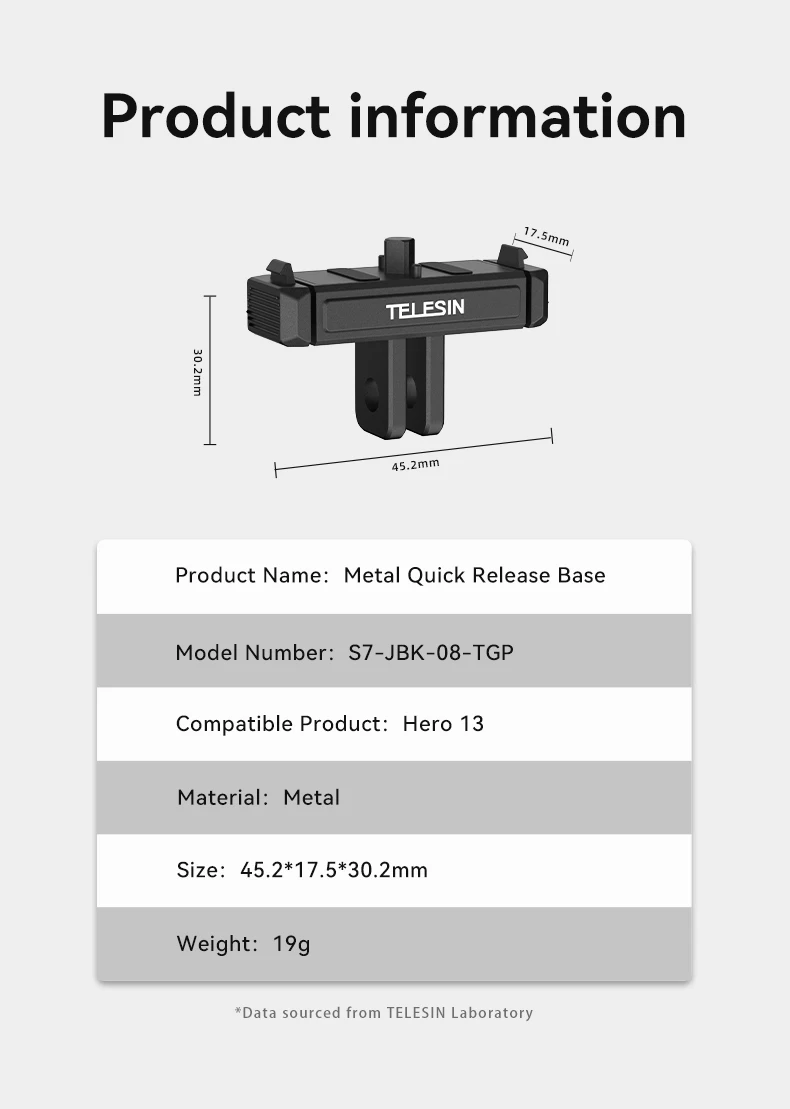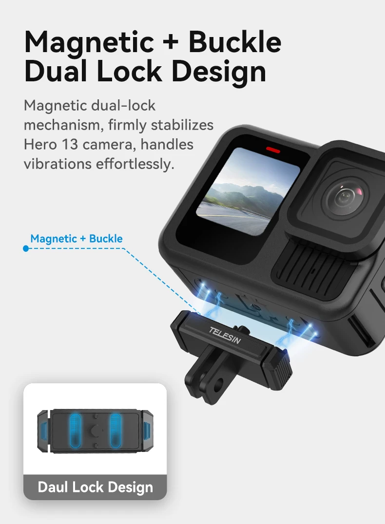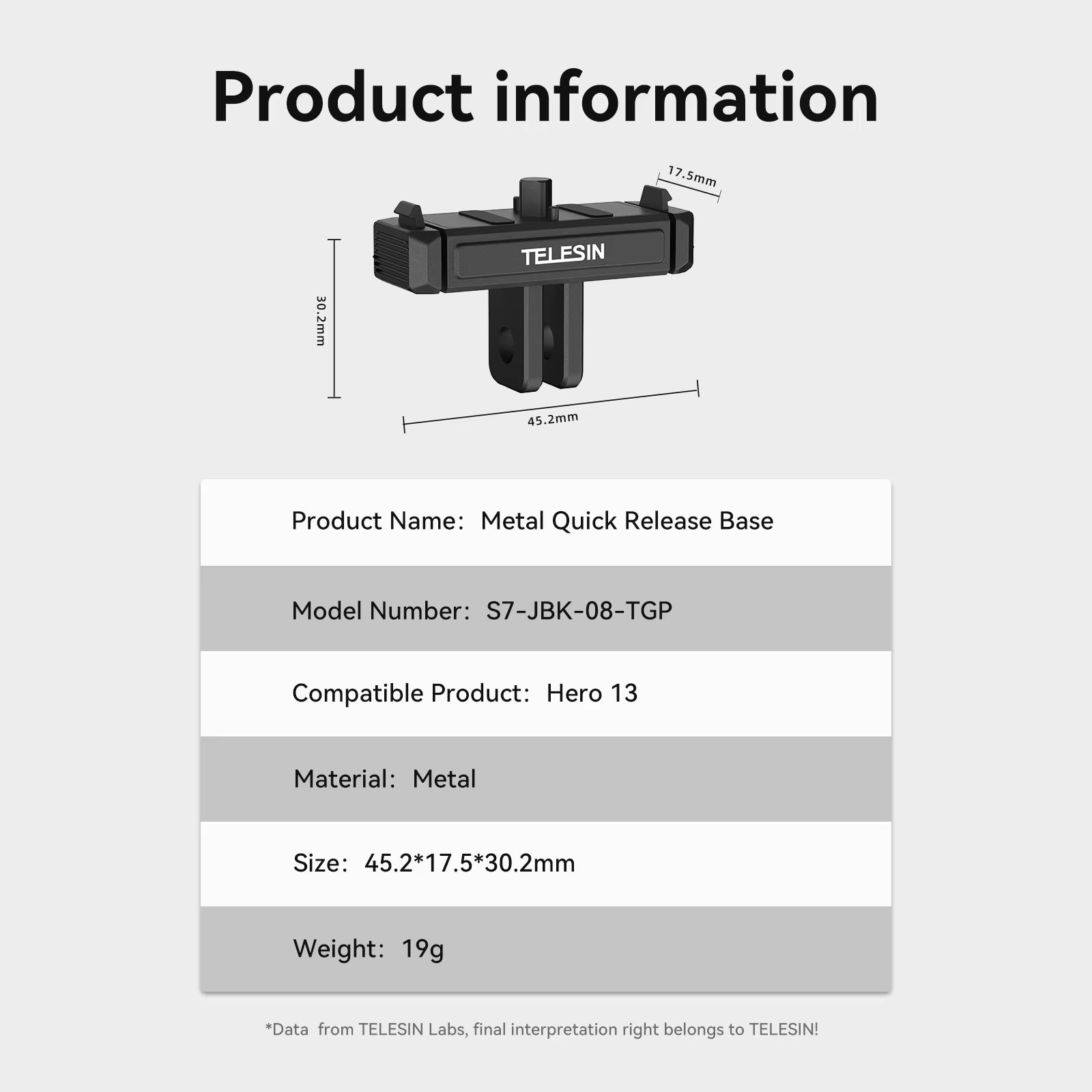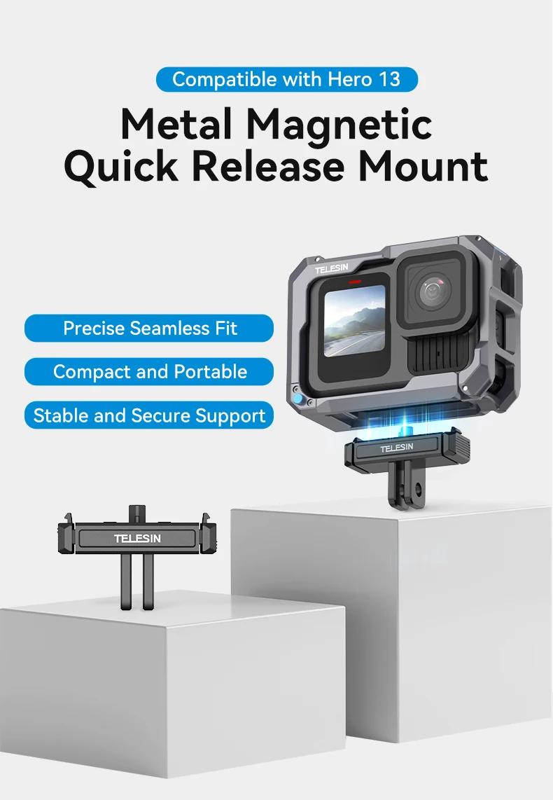 TELESIN Magnetic Qucik Release Aluminium Alloy Two Claw Adapter Action Camera Accessories for Hero 13 Adapter Dual Lock