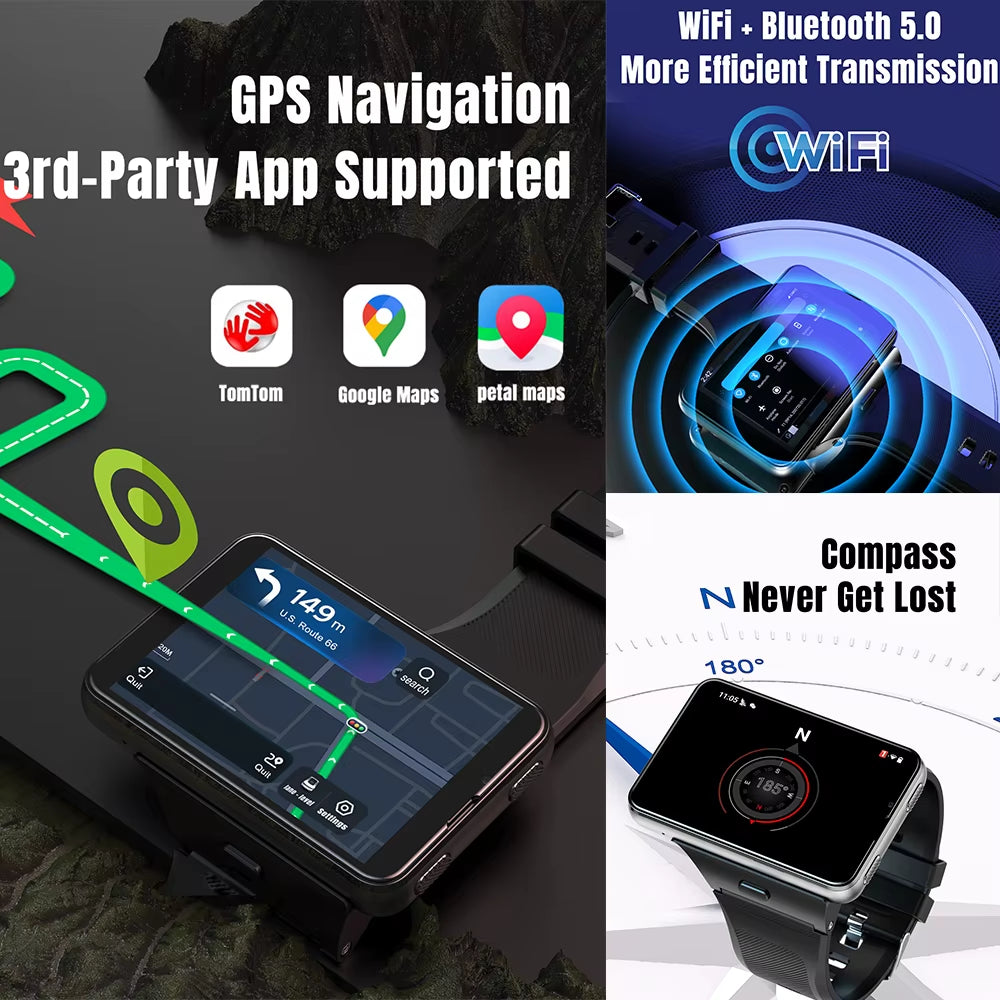 This smart watch is simple and elegant, supports SIM card, 4G LTE network, WiFi, BT 5.0 wireless connection and 2.88 inch touch screen, a variety of sports functions, supports heart rate monitoring, suitable for men and women.