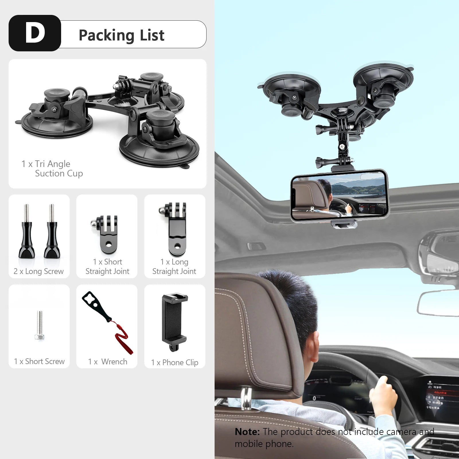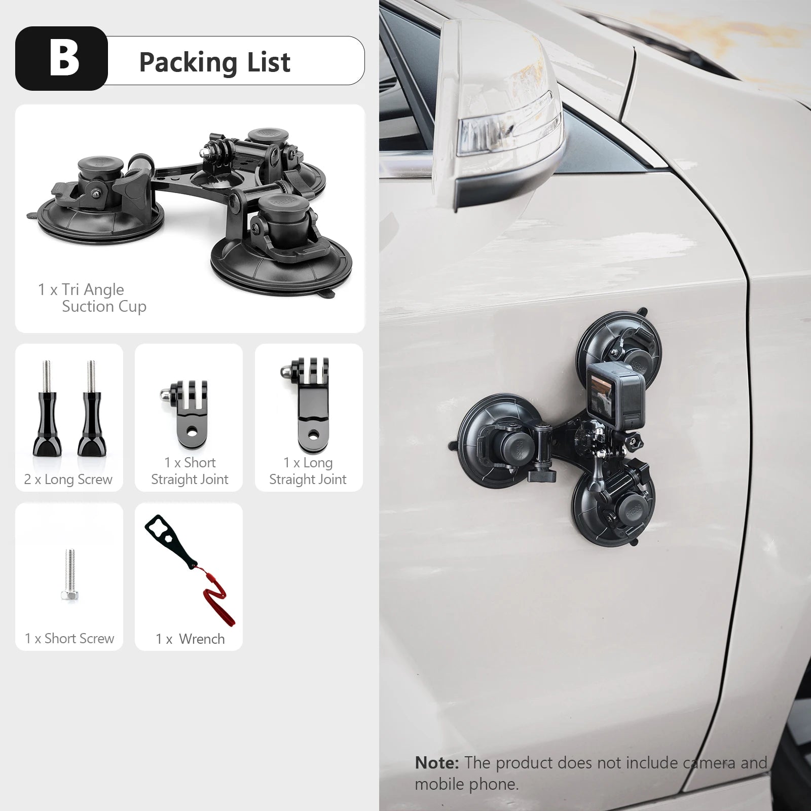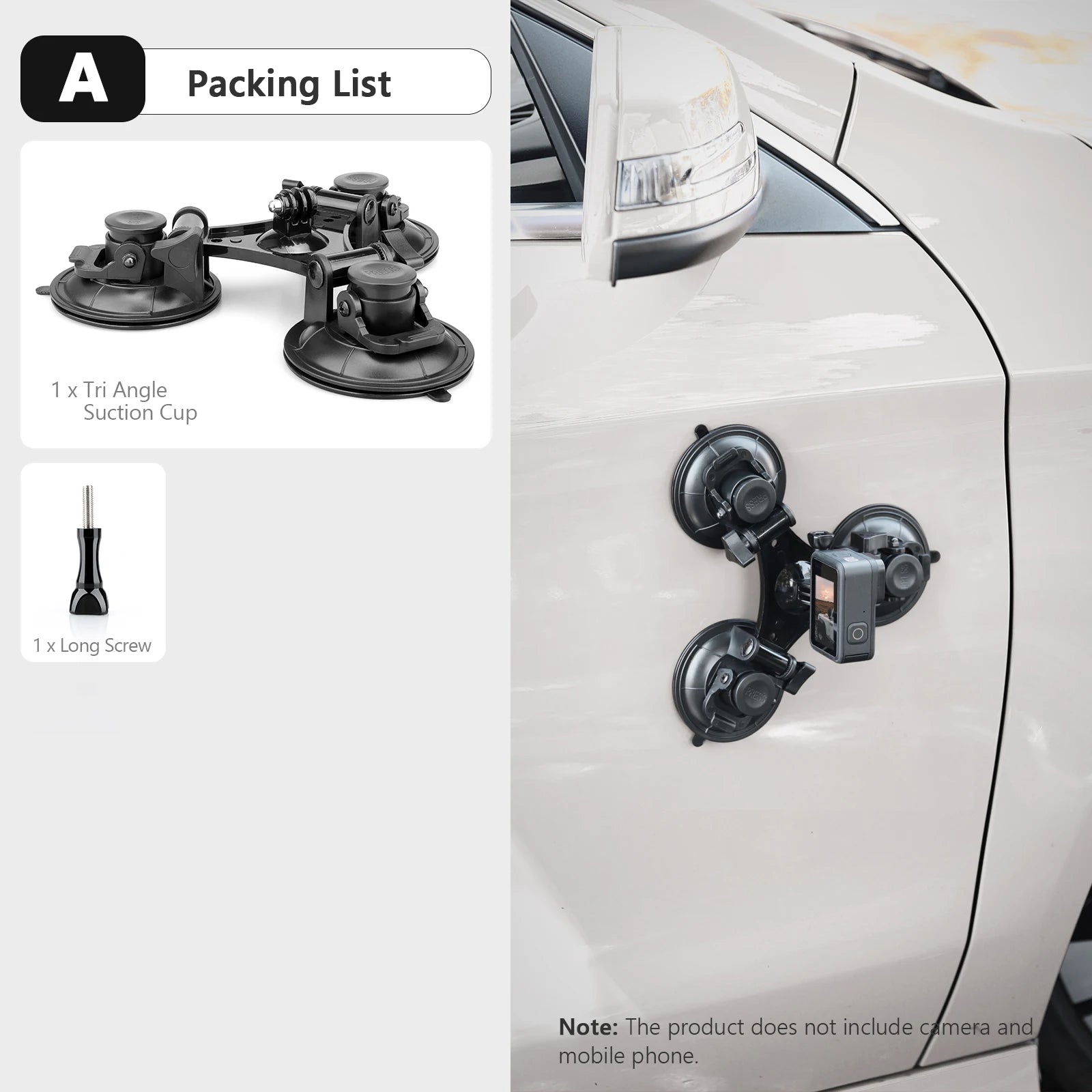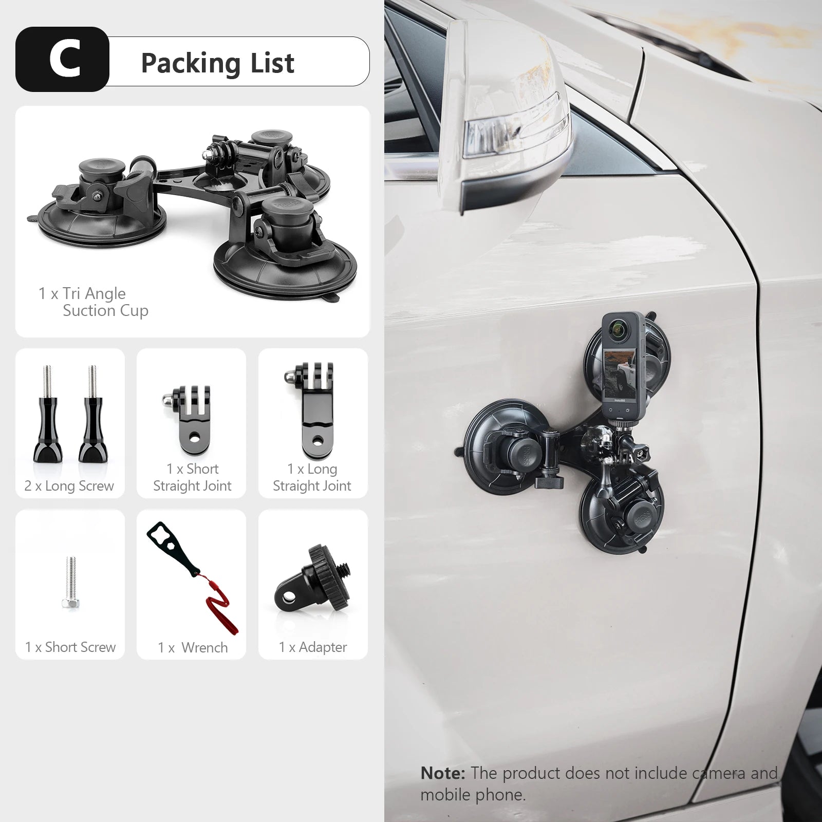 Vamson for Insta360 X3 One X2 Accessories Tri-Angle Suction Cup Tripod Mount for Go Pro Hero 11 10 9 DJI Action for Smartphone