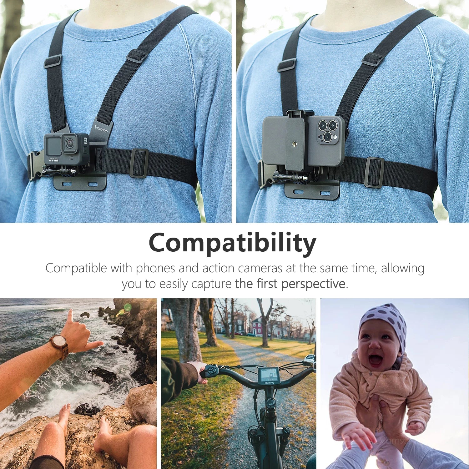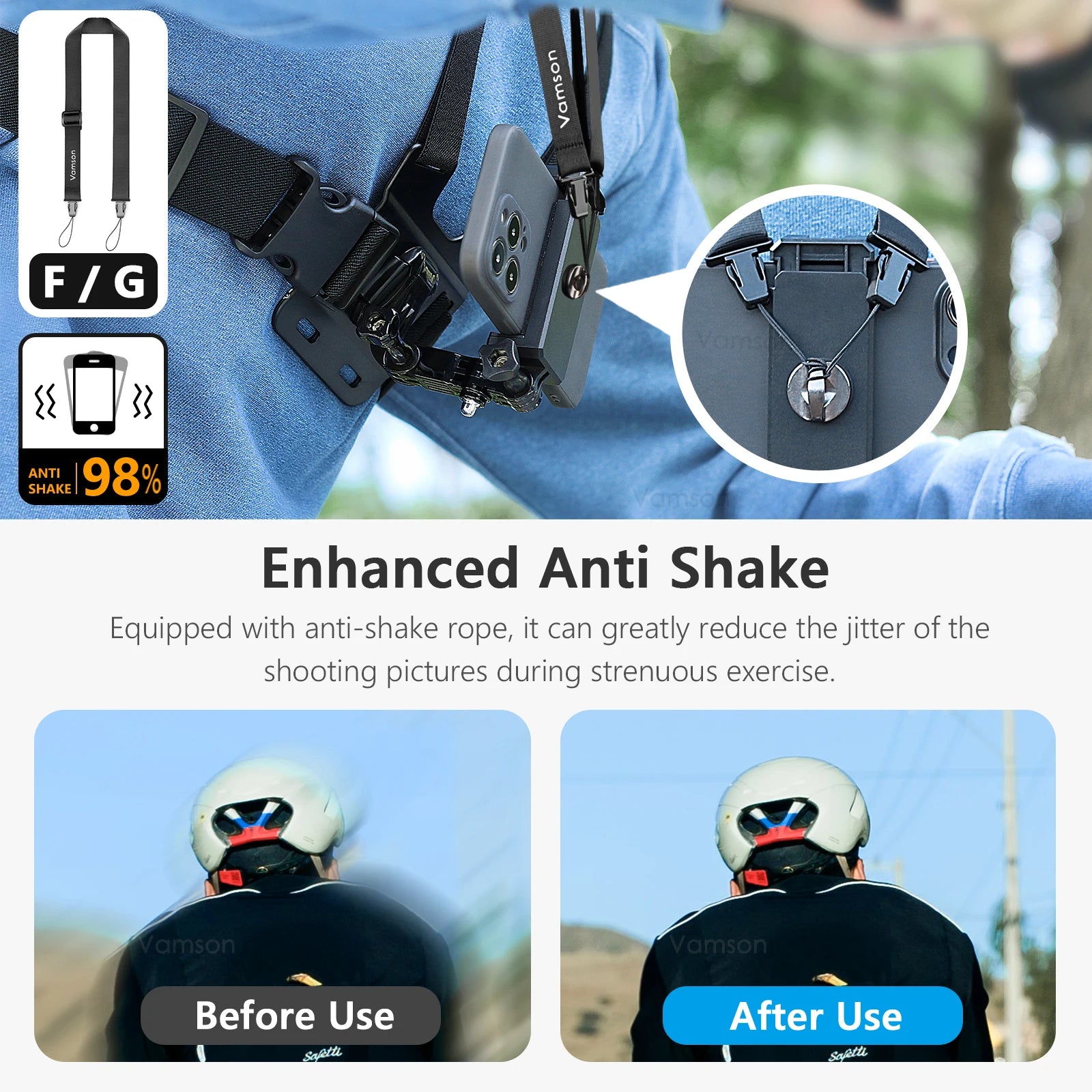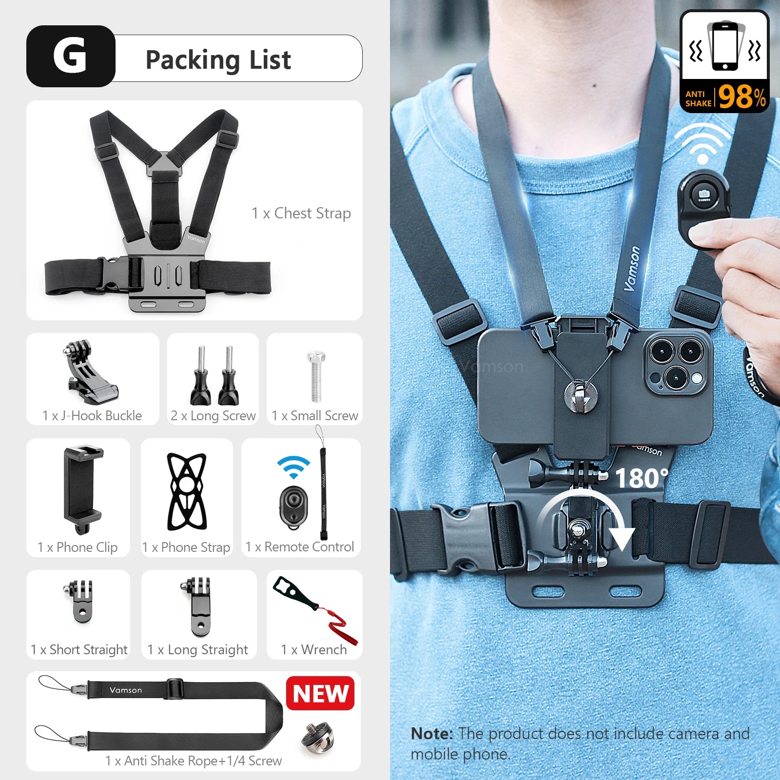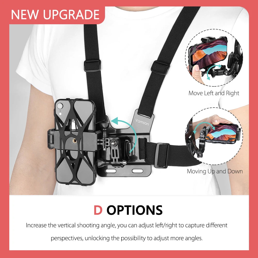 Vamson for Iphone 13 14 Samsung Huawei Chest Strap Belt Body Harness Phone Clip Mount for Insta360 for Gopro Hero 11 10 9 8 7