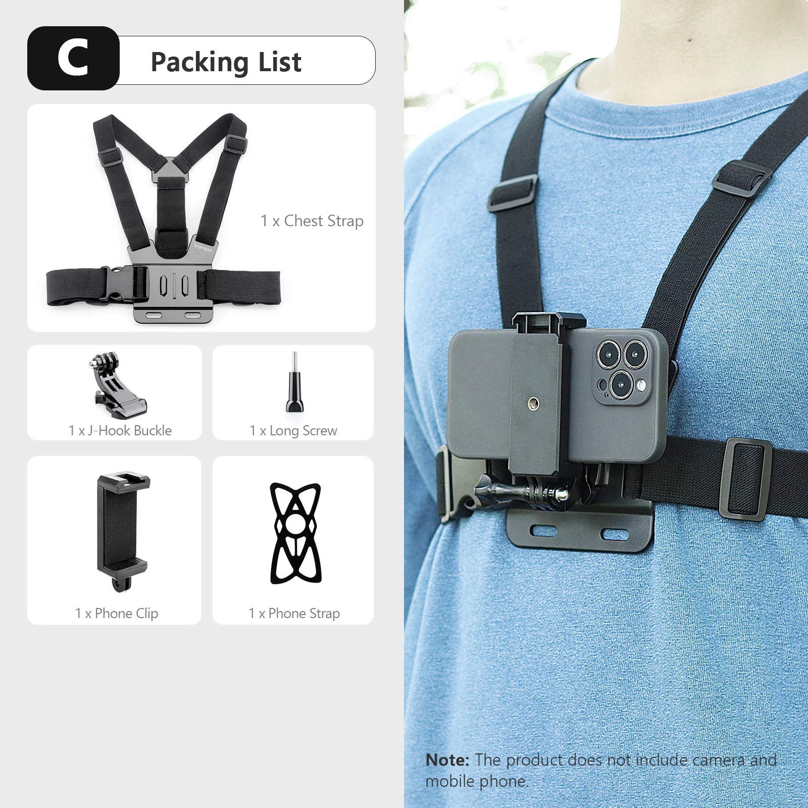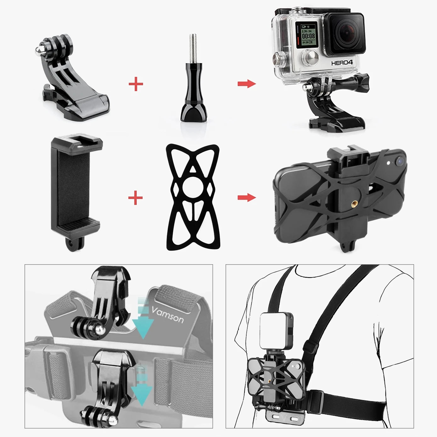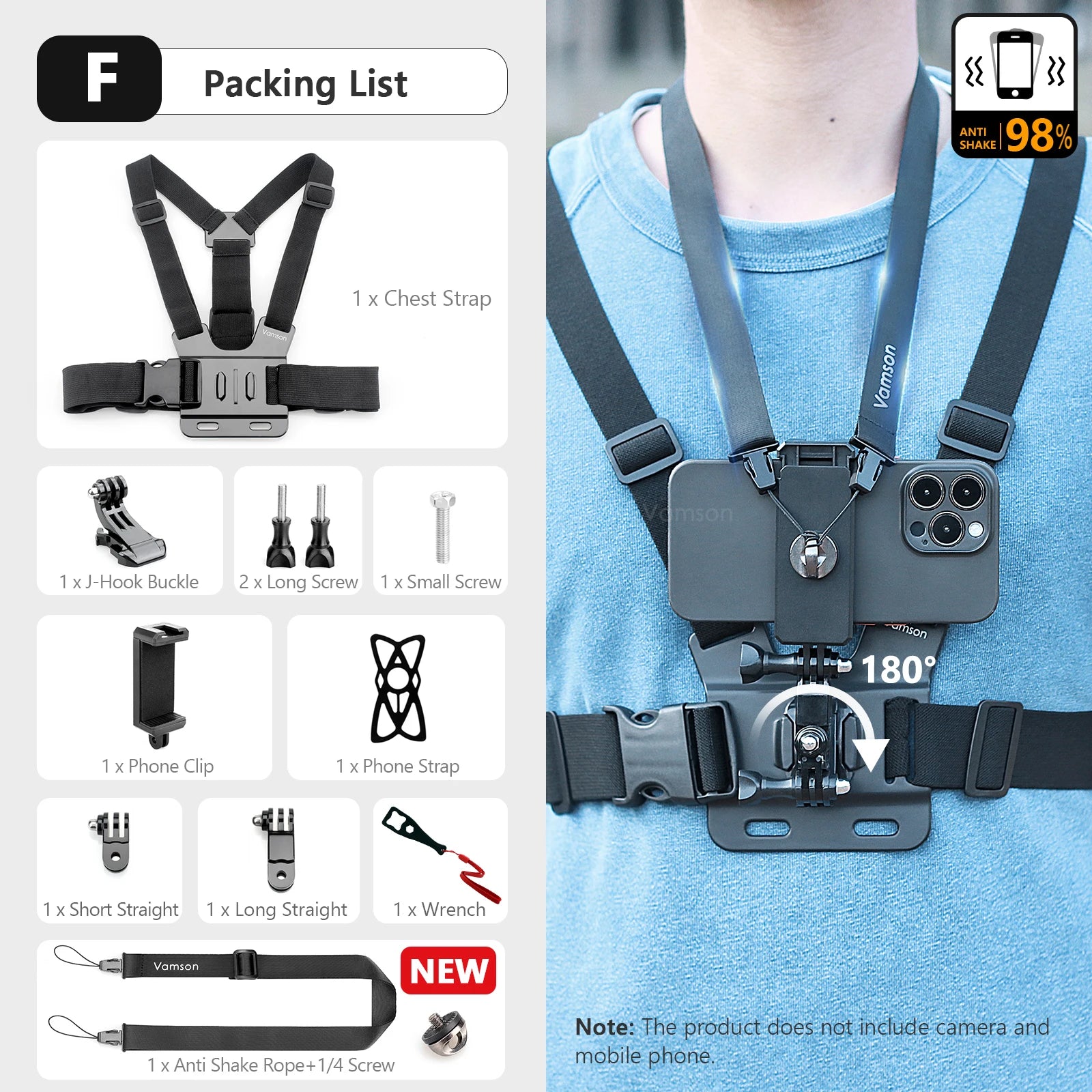Vamson for Iphone 13 14 Samsung Huawei Chest Strap Belt Body Harness Phone Clip Mount for Insta360 for Gopro Hero 11 10 9 8 7
