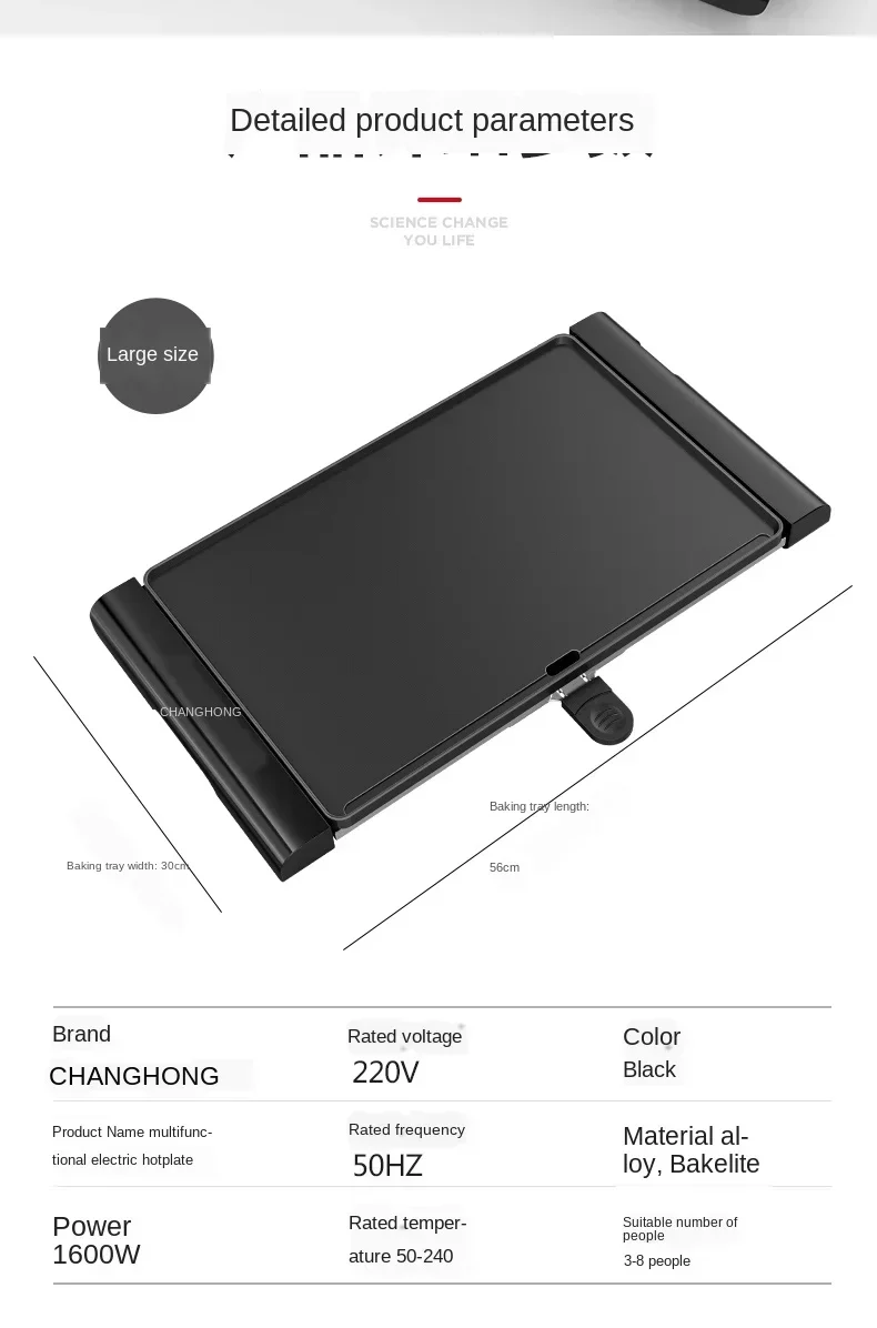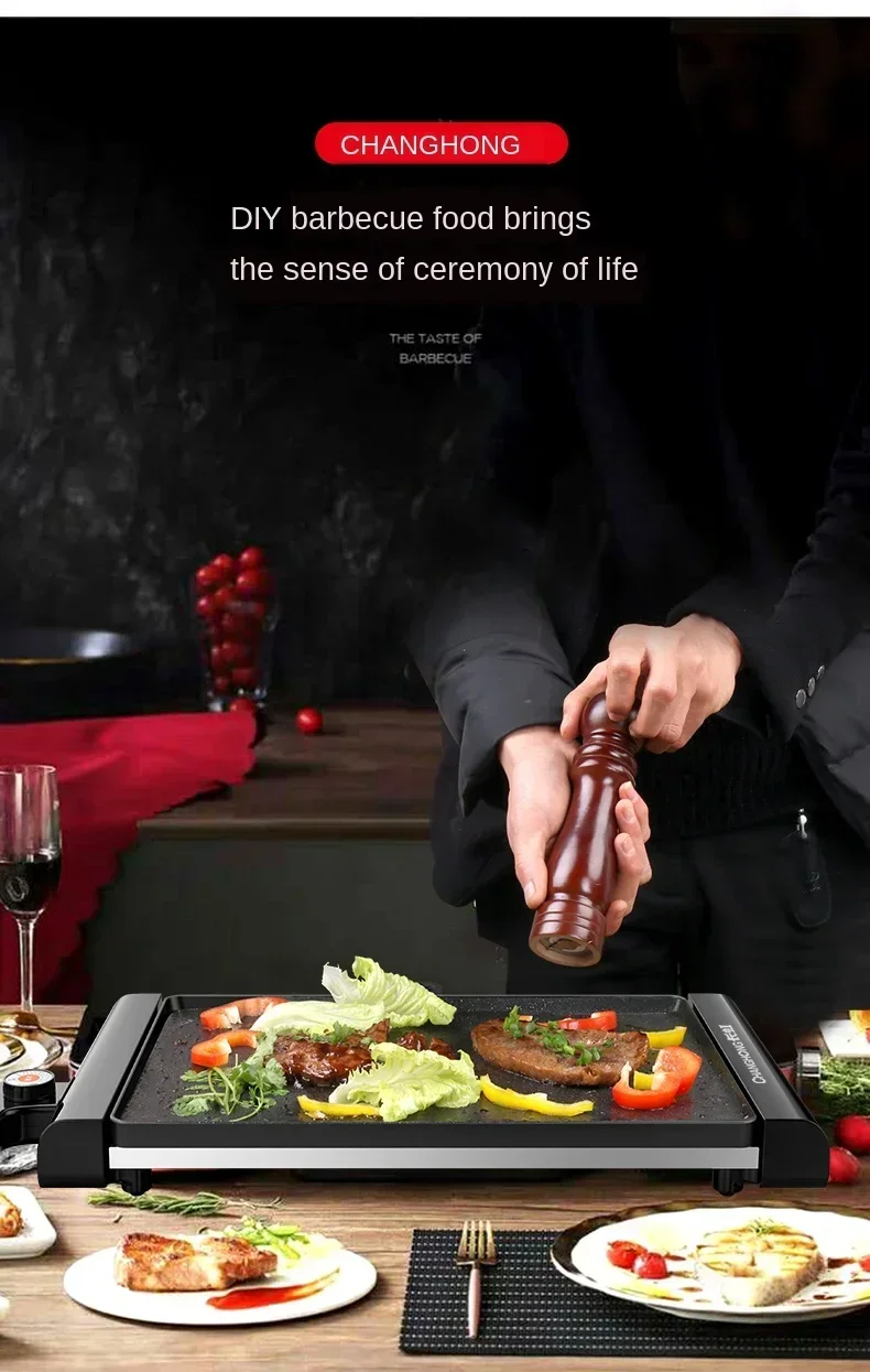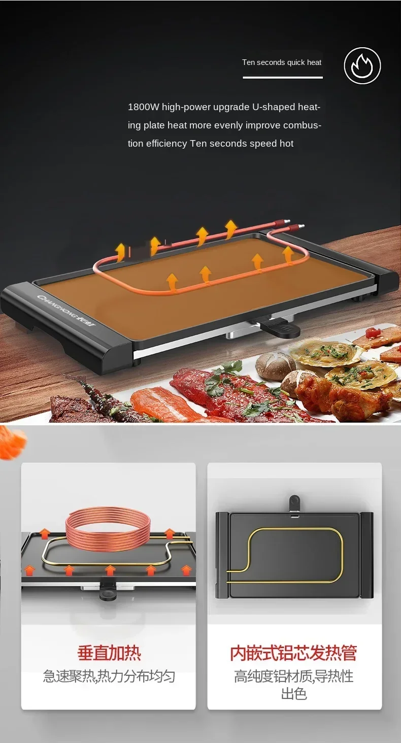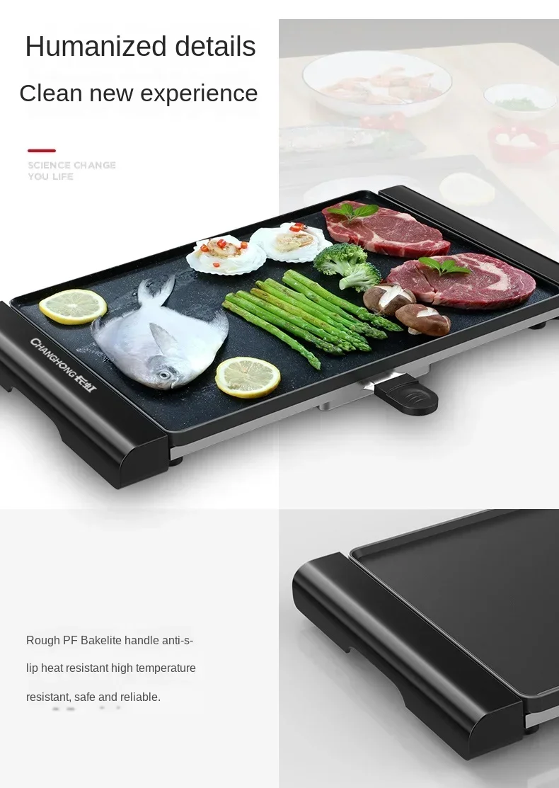 220V Large Electric Grill Barbecue Household Smokeless Electric Grill Pan Non-Stick Grill Pan Grilled Fish Electric C