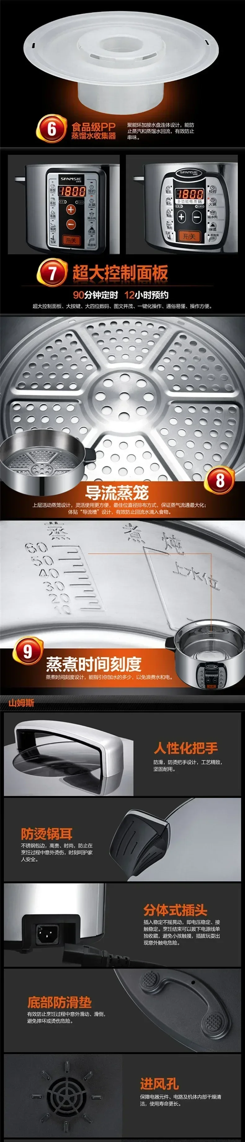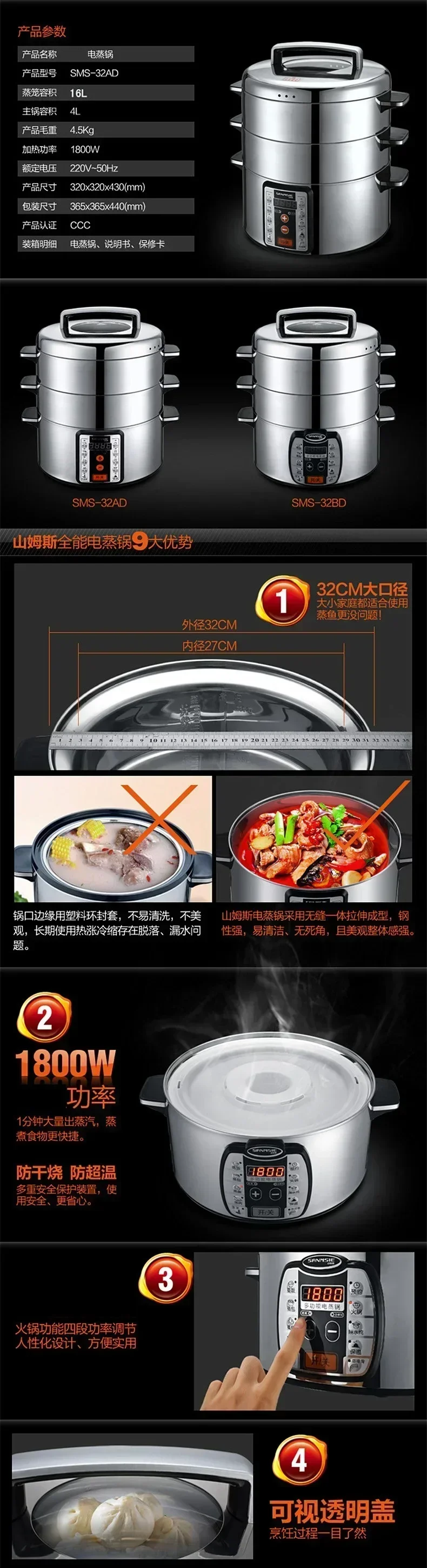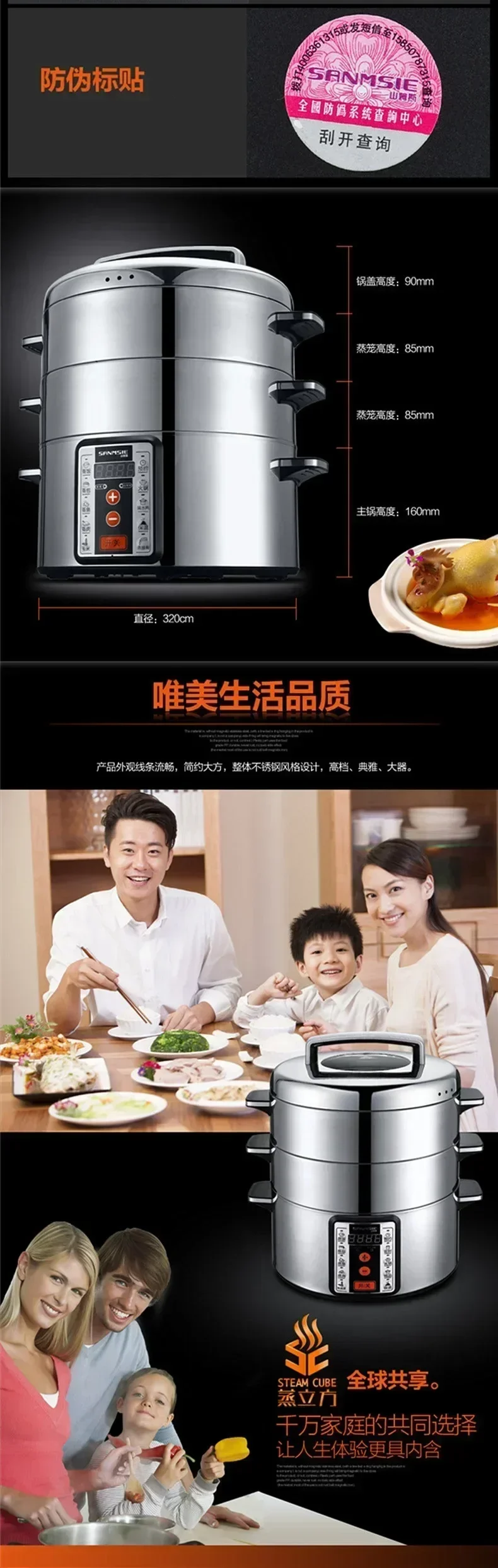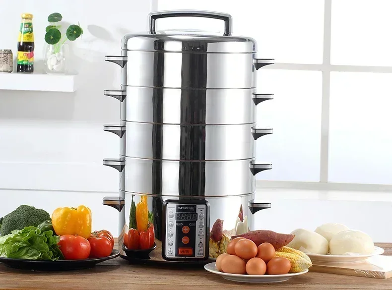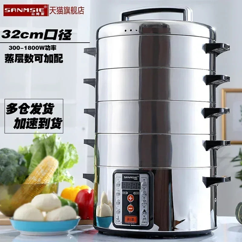 220V Samnsie Stainless Steel Electric Steamer with Large Capacity and Multi-Functionality for Home and Commercial Use AN
