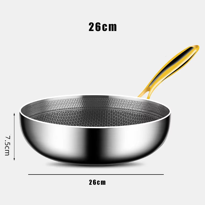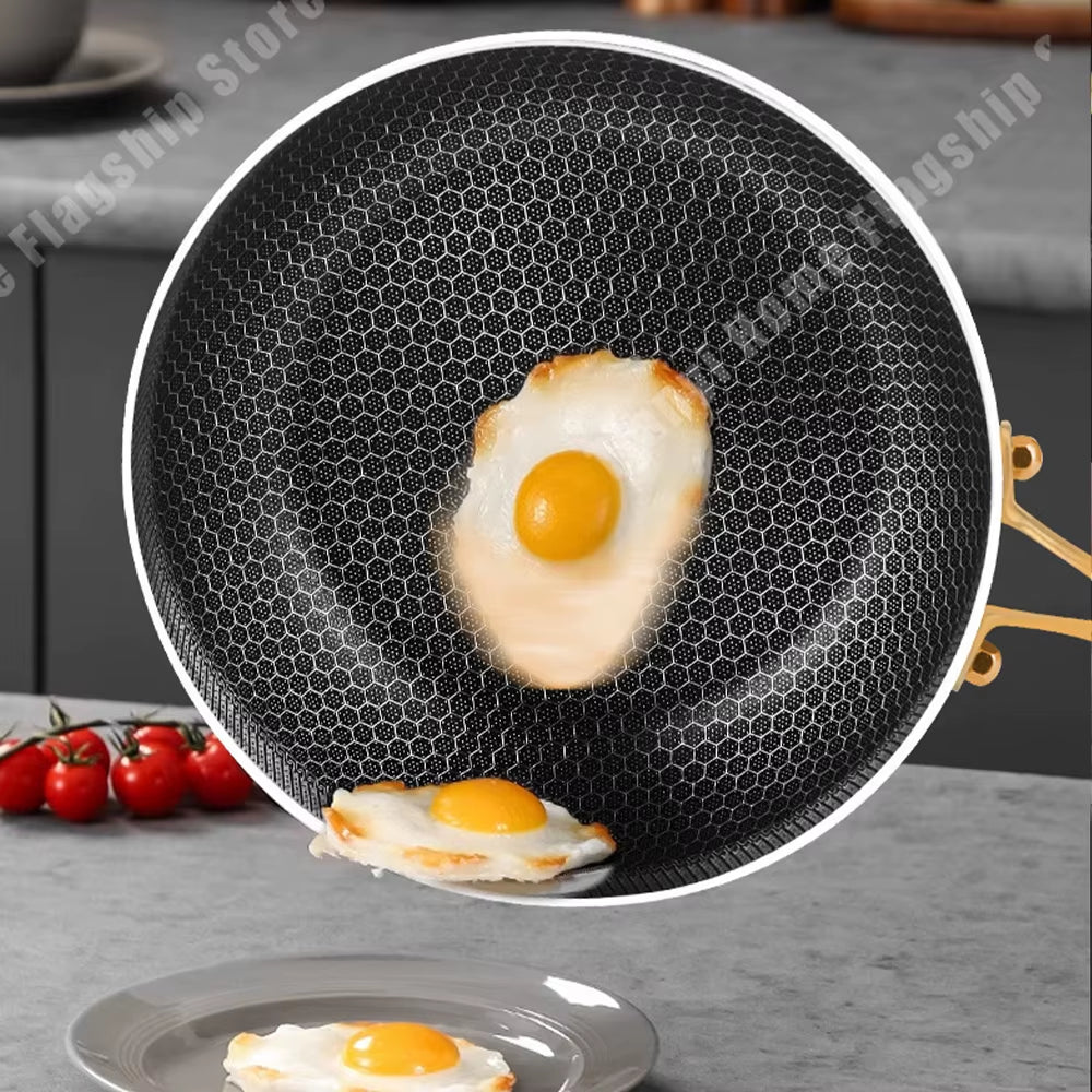 316 Stainless Steel Frying Pan Wok Non-Stick Cooking Honeycomb Steak Gas Stove Pot Induction General Saucepan Kitchen Cookware