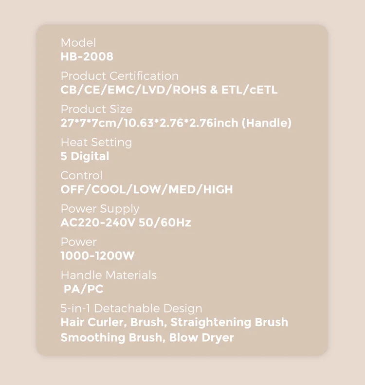 5-In-1 Multifunctional Hair Styling Tools, Hot Air Brush, Hair Dryer, Straightening Brush, Hair Curler, Straightening Brush,220V
