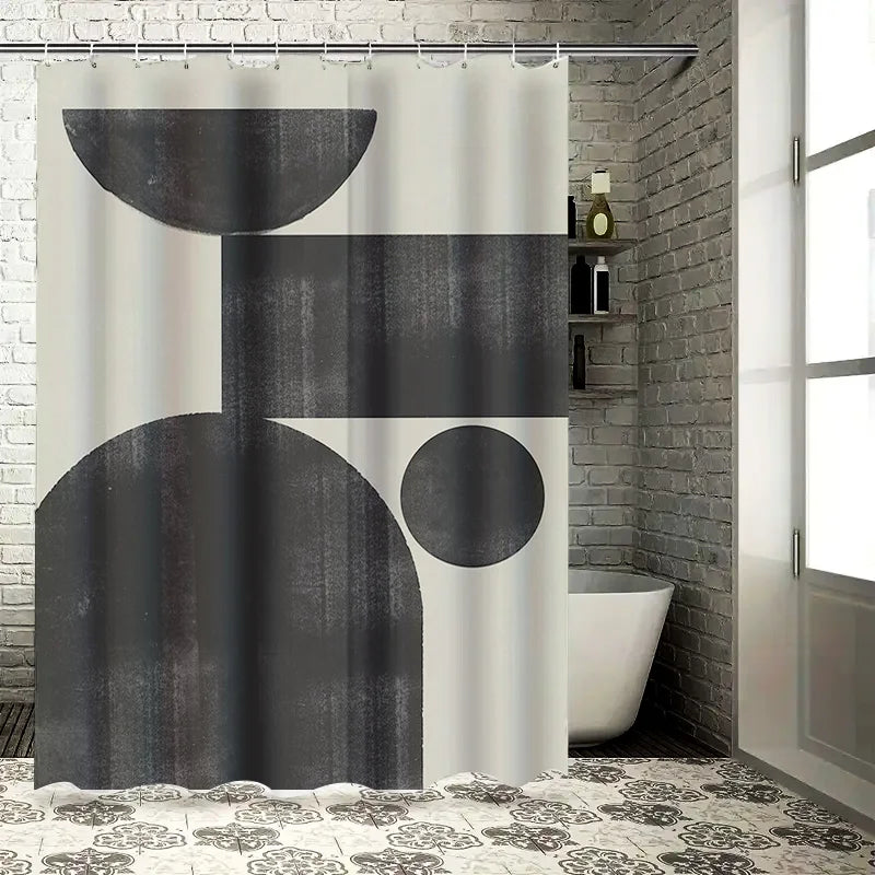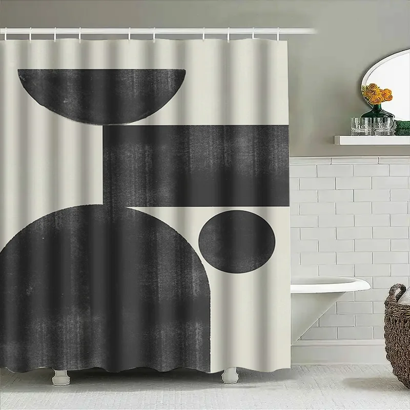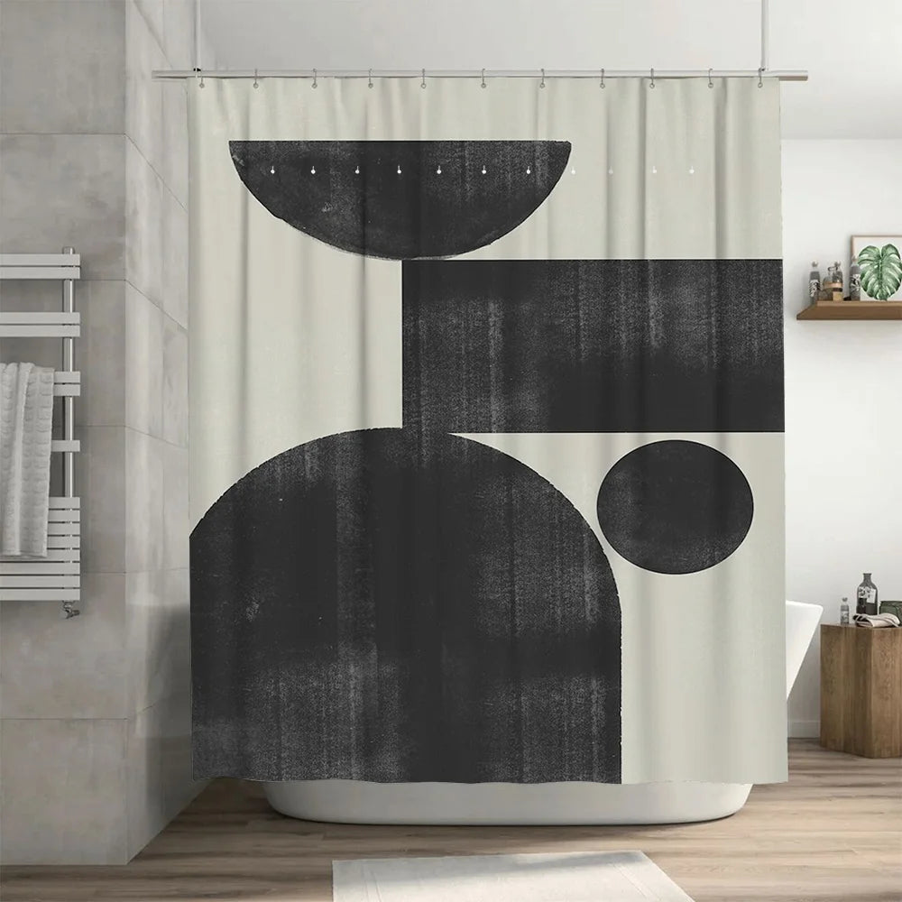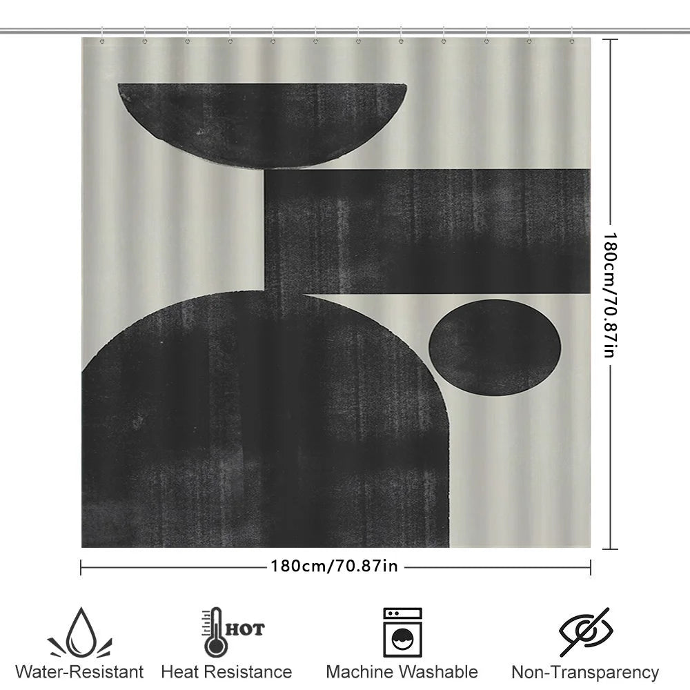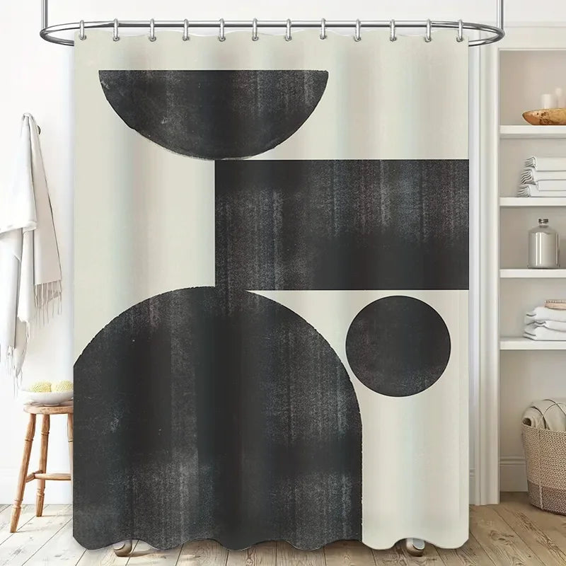 Black White Geometric Shower Curtain with Simple Design for Bathroom Decor Modern Rectangular Hanging Liner Available in Custom