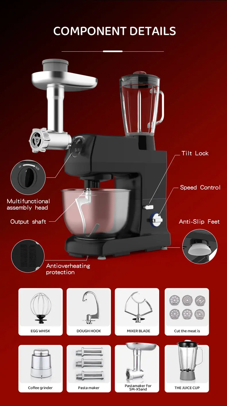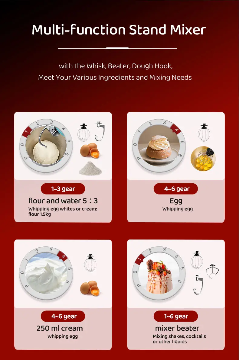 Cheftronic 1200W 5L Stand Mixer Food Mixer Dough Whipping Machine Multifunction Blender Robots