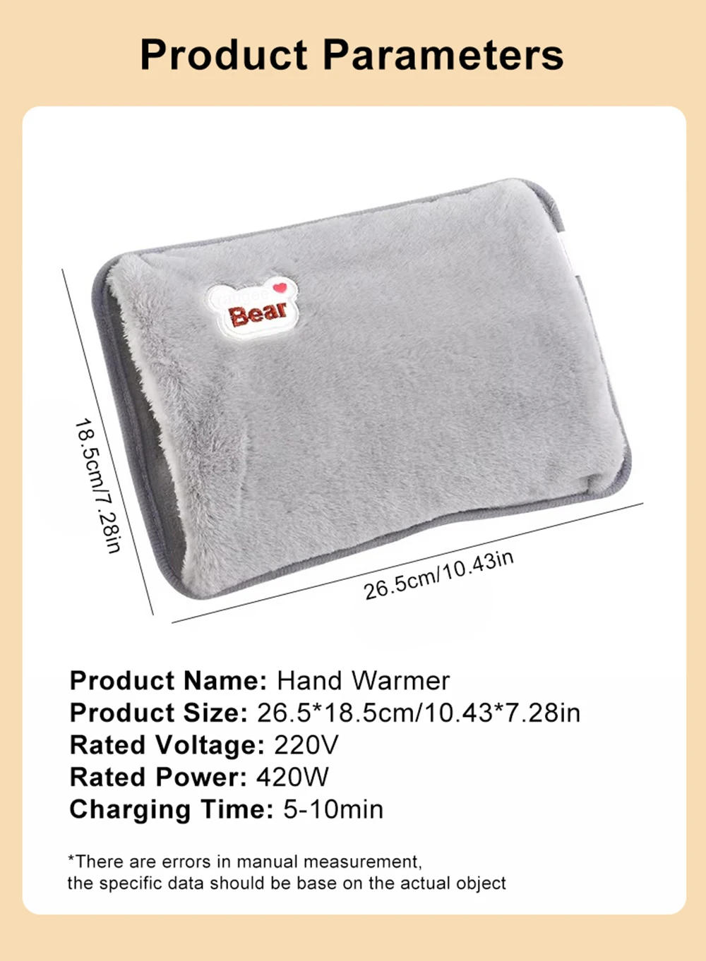 【Long Time Maintenance】It's a rechargeable warmer bag. Fast Charge in 5-10 minutes,and keep a long time for warm.