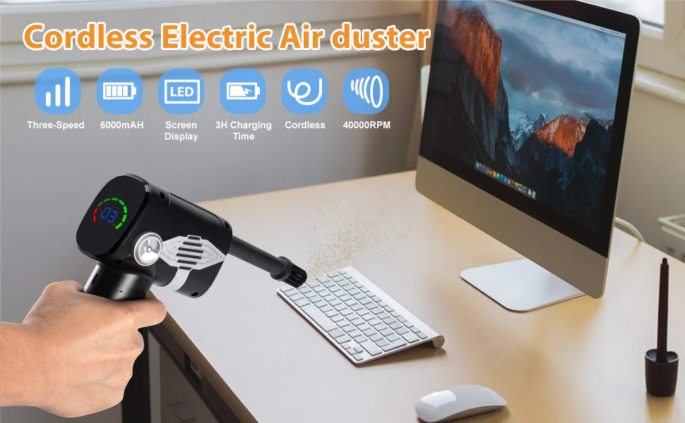 Electrical Dust Blower 3-Speed Air Duster-Performance-Strong 60000 RPM Air Fan Electronics Cleaner for Laptop Office Equipment