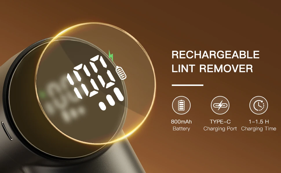 Small yet powerful—this palm-sized lint remover (5.7 x 2.75 x 2.36 inches) is easy to hold and perfect for travel. With a fast charging time of just 1 to 1.5 hours, the rechargeable battery ensures you don’t have to worry about frequent replacements, saving you time and effort.