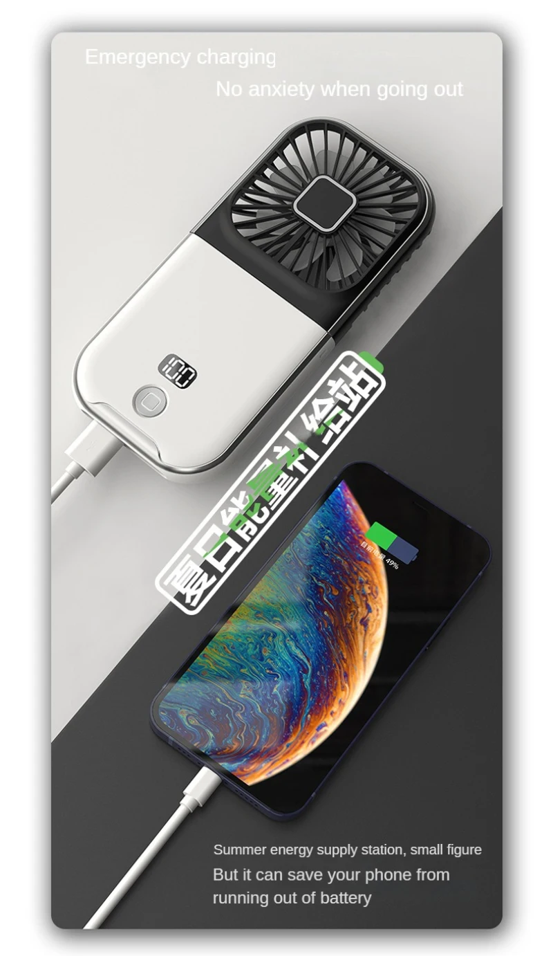 Handheld Outdoor Small Fan Portable Small Halterneck Adjustable Speeds Foldable USB Charging Cooling Artifact F30 PRO