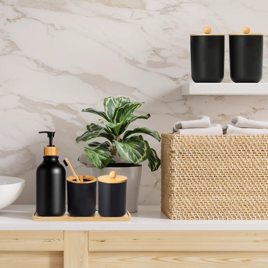 Lotion Soap Dispenser Cotton Swab & Toothbrush Holder Farmhouse Decoration Bathroom Storage Container Soap Dispenser