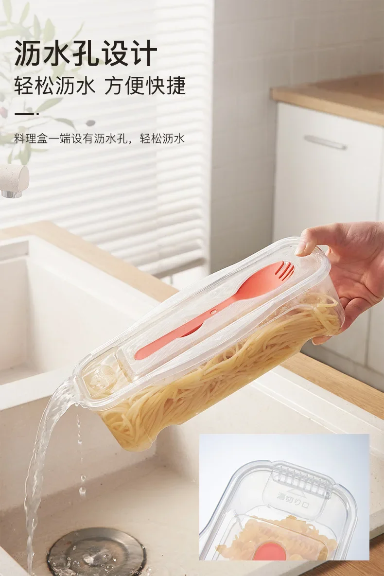Microwave Pasta Cooking Box with Strainer Heat Resistant Pasta Box with Salad Spoon Steamer Spaghetti Cooker Kitchen Accessories