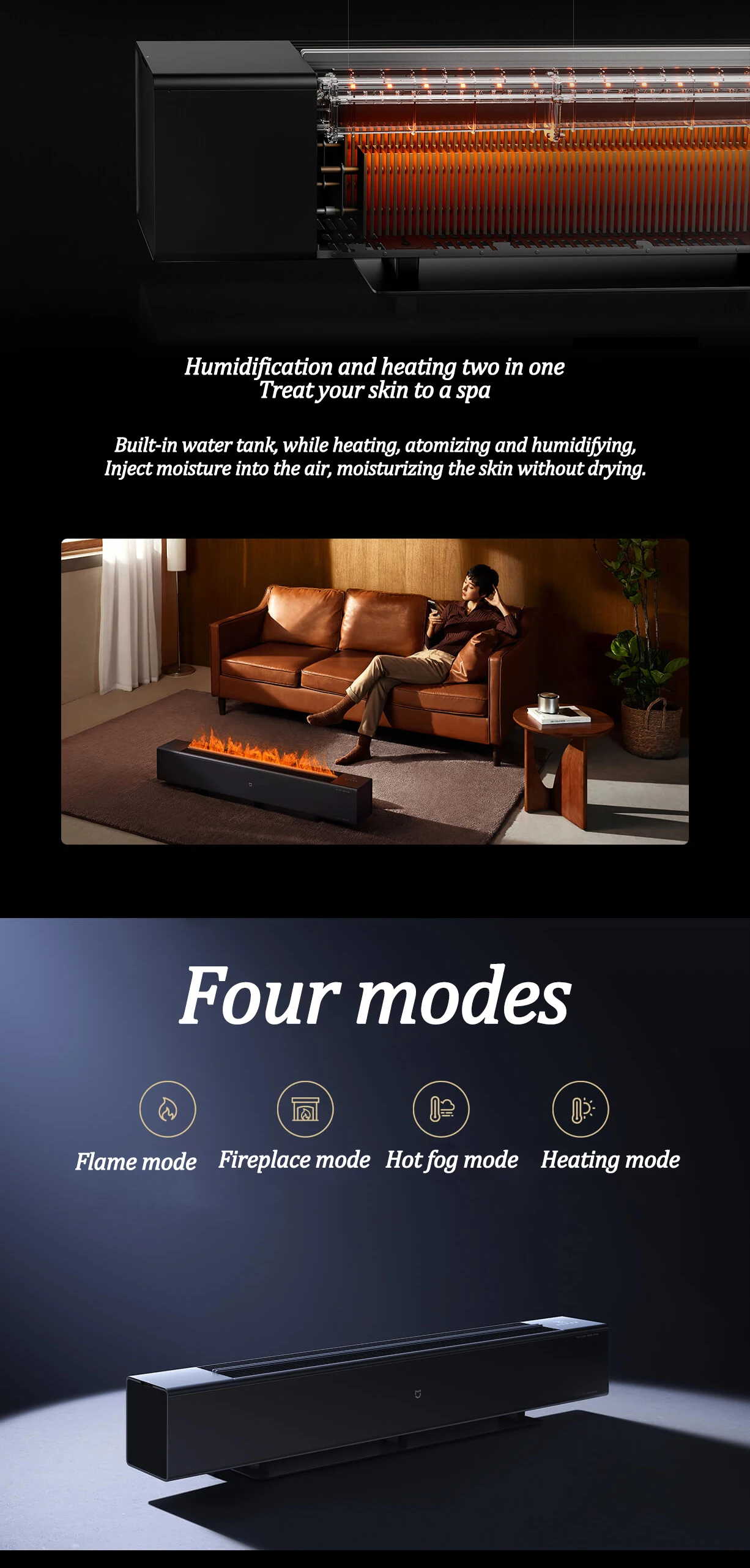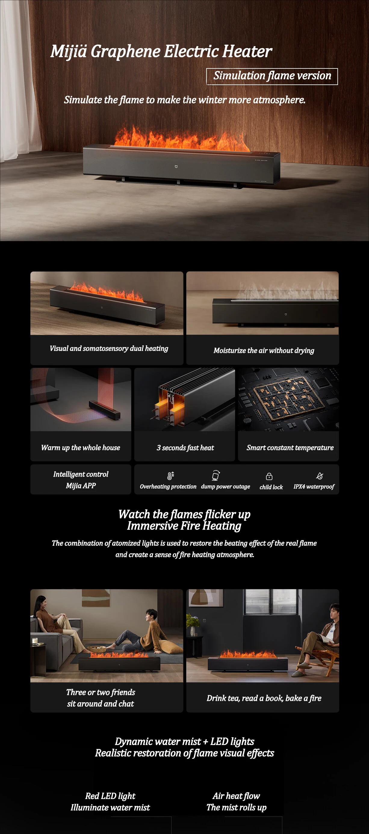 MIJIA Electric Heater Graphene Technology Simulation Flame Version Mobile Floor Heating Humidification Function Chimney