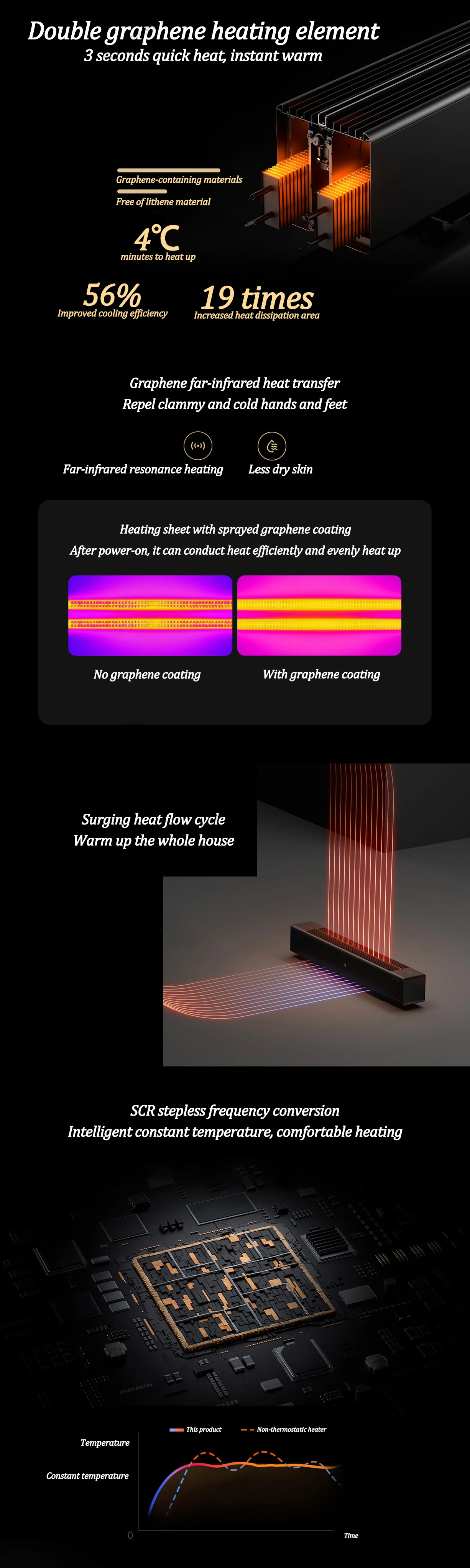 5. SCR stepless frequency conversion, intelligent constant temperature, comfortable heating.