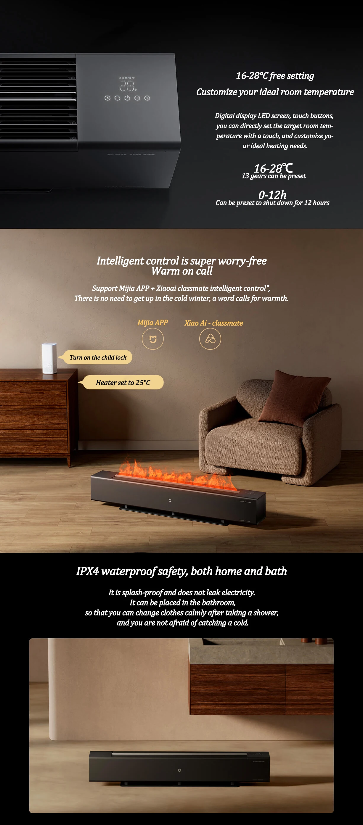 7. 16-28°C free setting, customize your ideal room temperature.