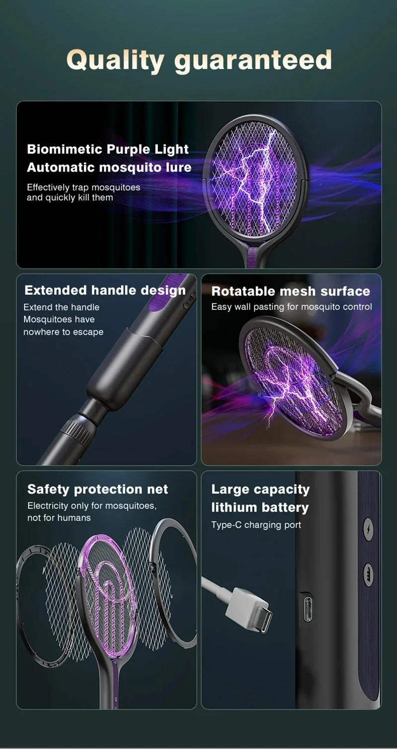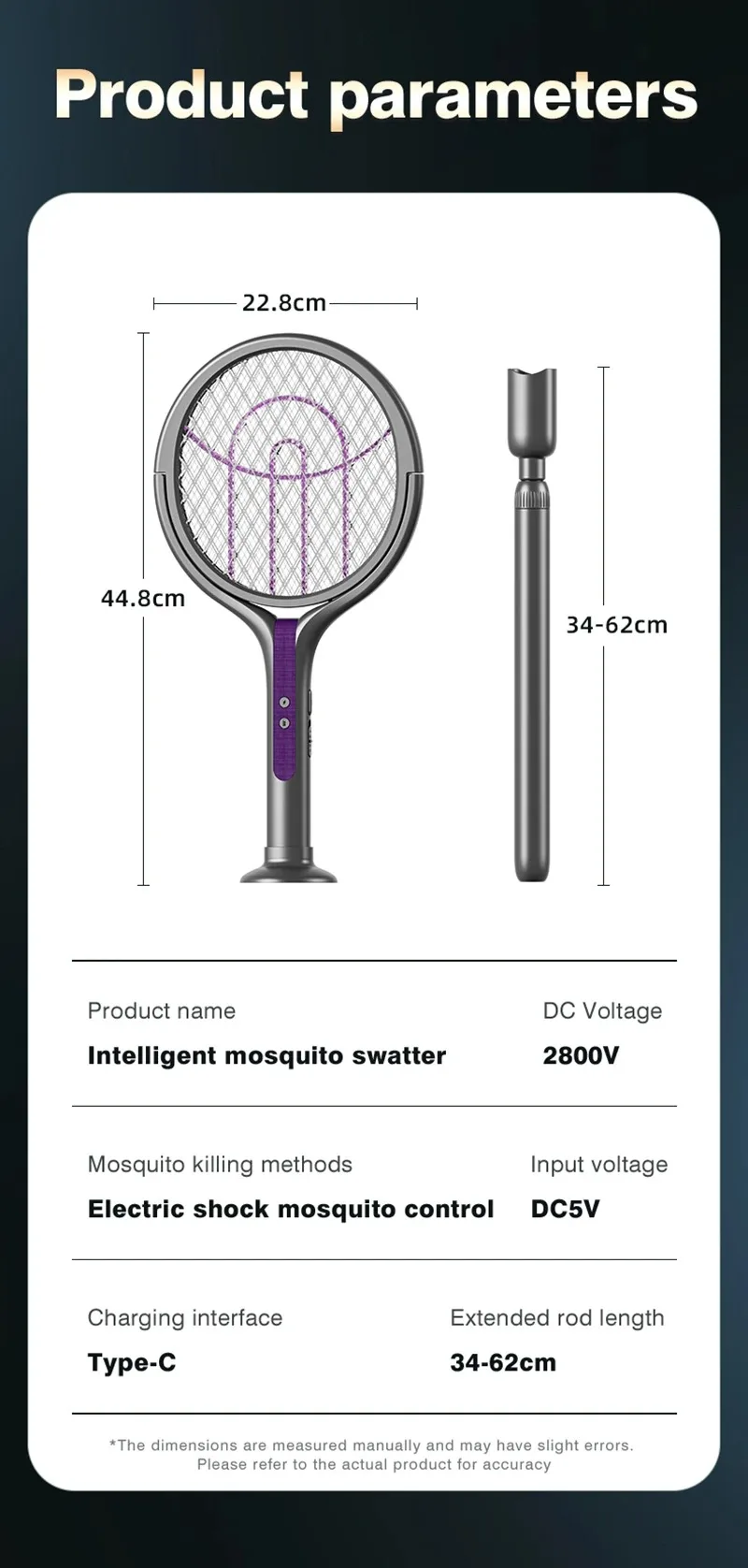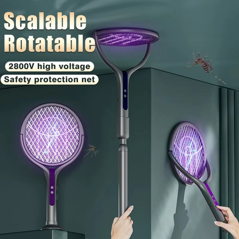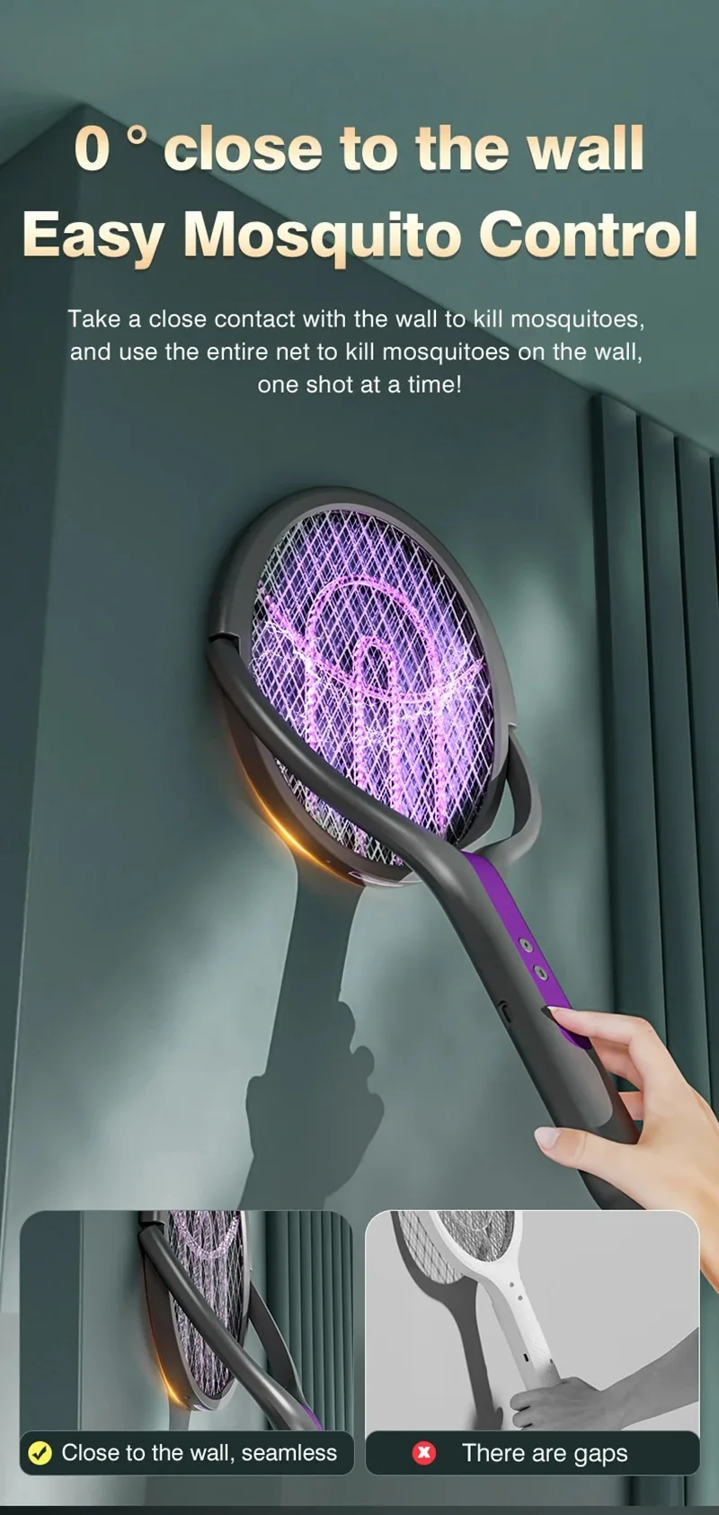 Multi Functional 2-In-1 Mosquito Killer Lamp Angle Retractable Mosquito Swatter USB Rechargeable Mosquito Swatter Bat Swatter