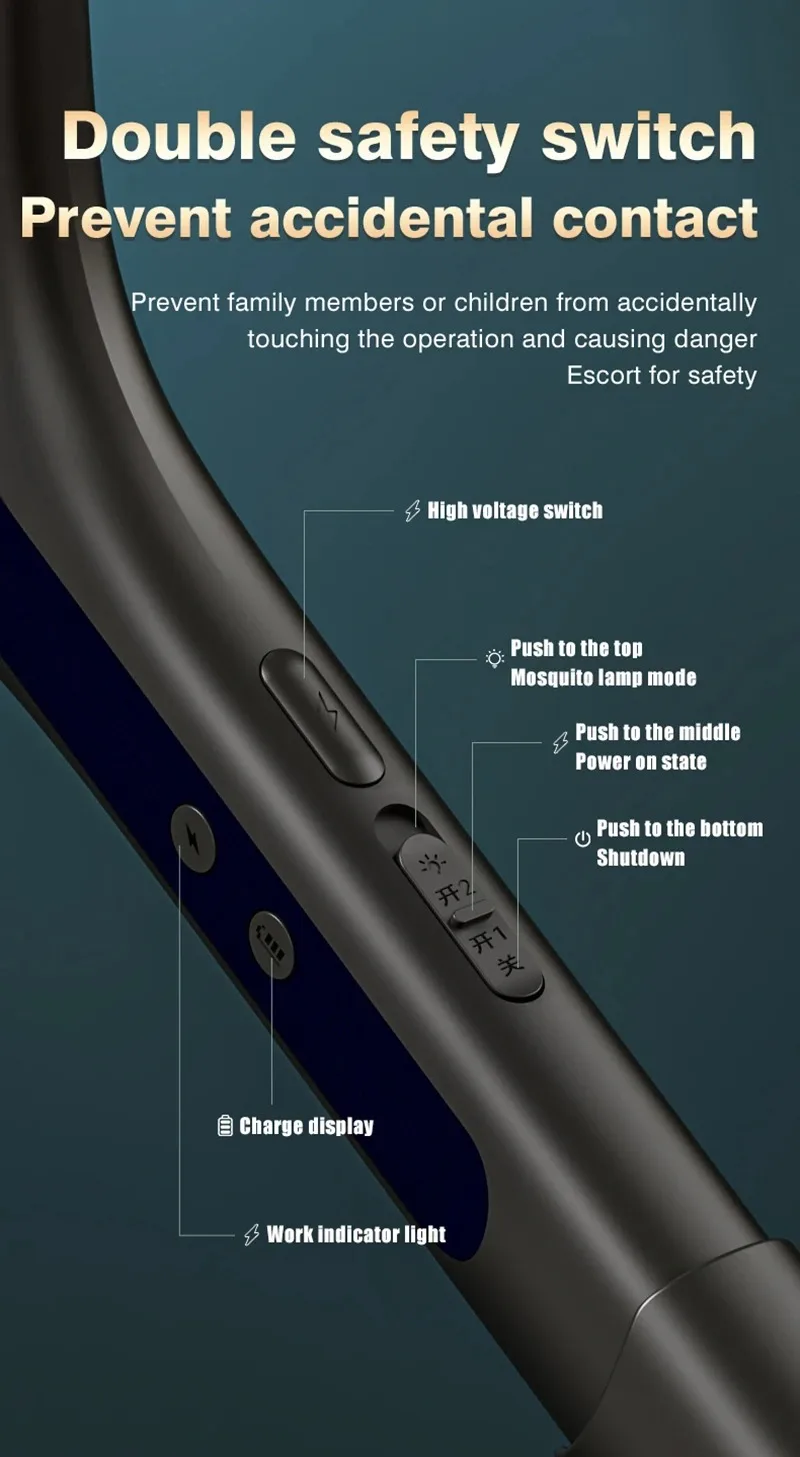 Easily eliminate pesky fly with our Fly Swatter Racket. With a extendable handle up to 106cm and 5-layer safety net design, it gives accurate trapping without wire constraints. Features 2 on-off buttons for convenience. Reach for efficient fly control.