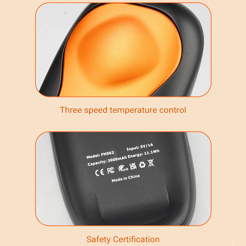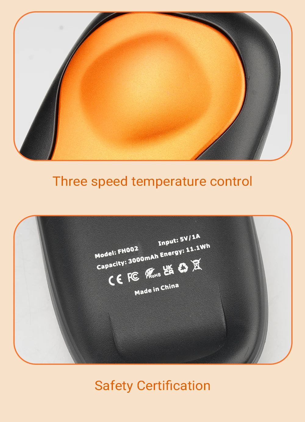 3.Best Warming Experience: 3-level temperature adjustment, 3S quick heating, This electric hand warmer offering a wider temperature ranging from 45°C to 60°C