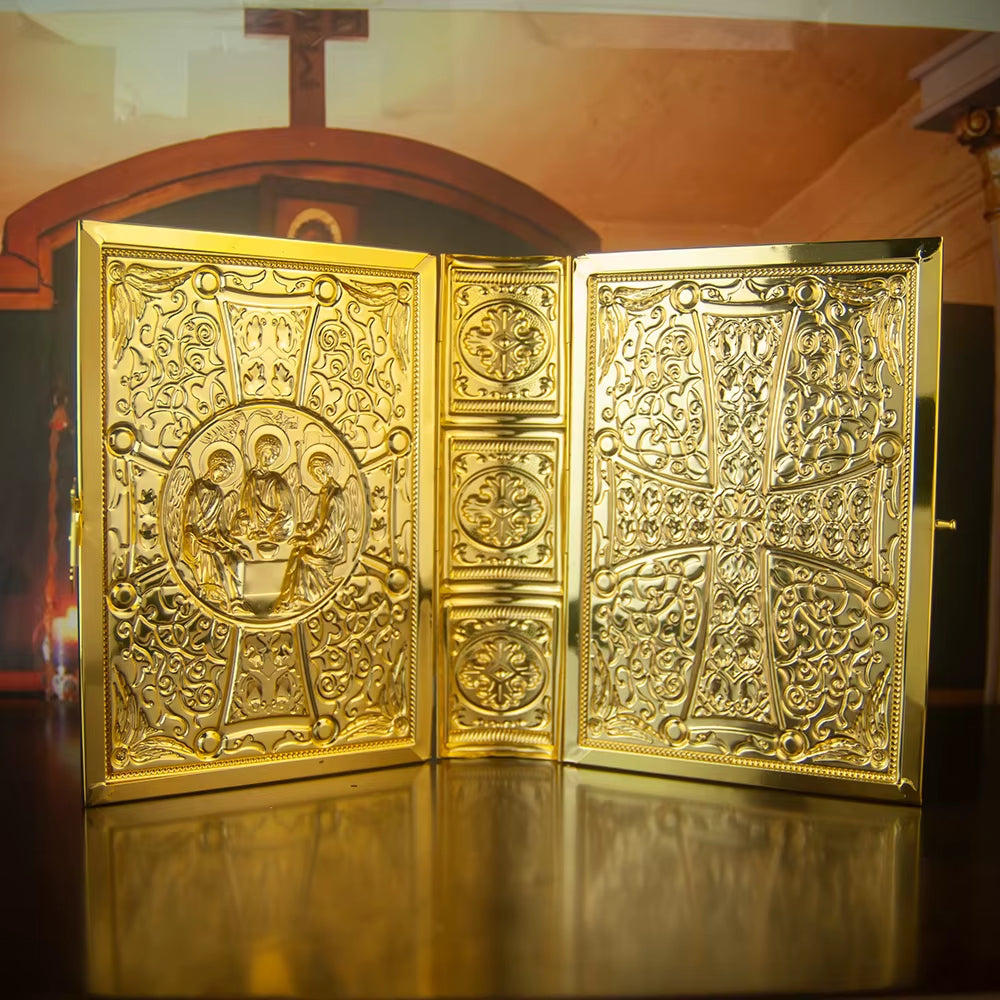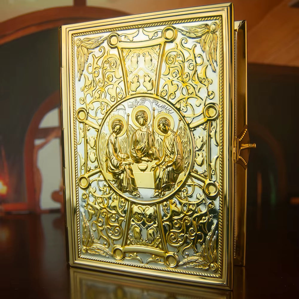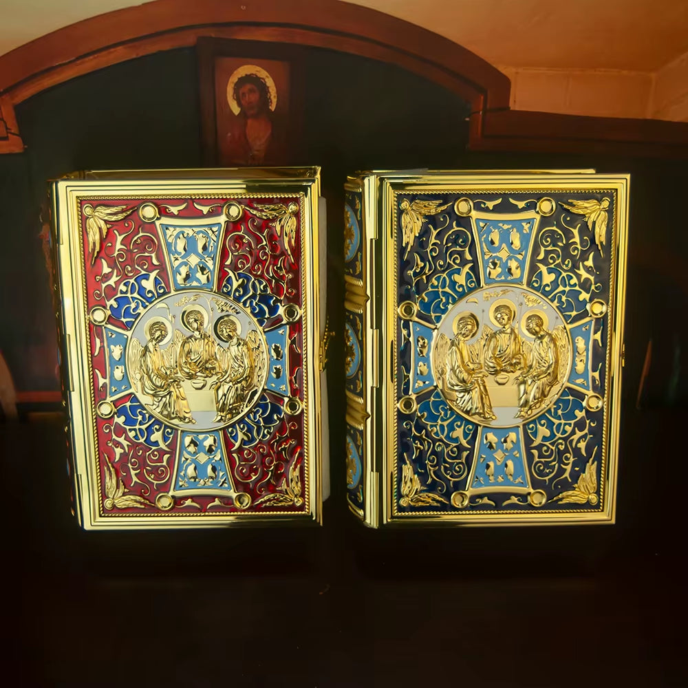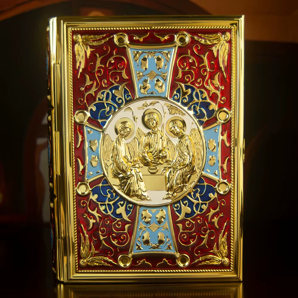 Orthodox Bible Book Cover Gold Plated Enamel with Trinity Icon Liturgical Religious Book Case Orthodox Bible Book Cover