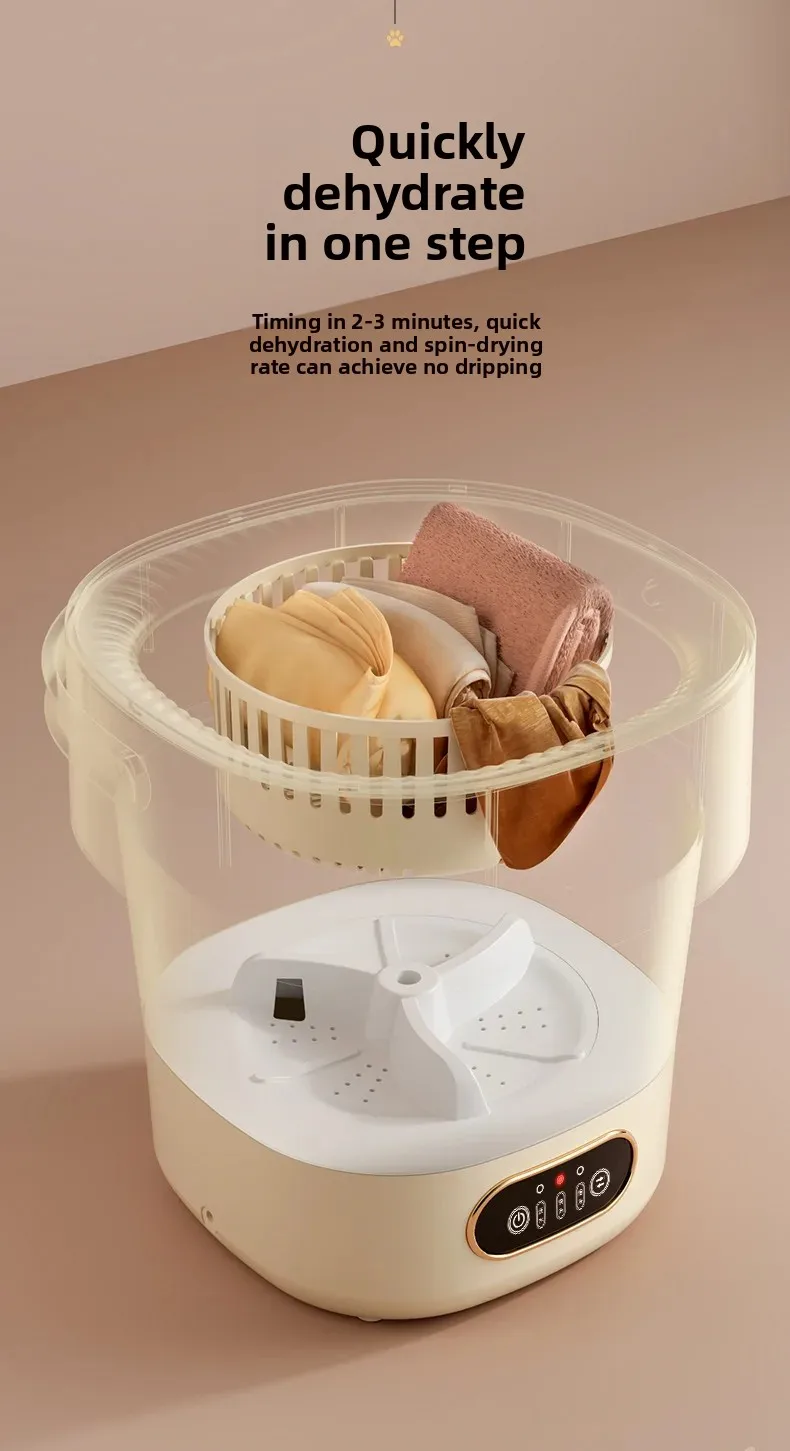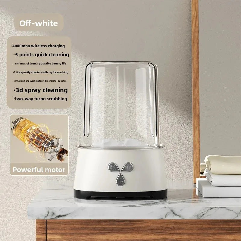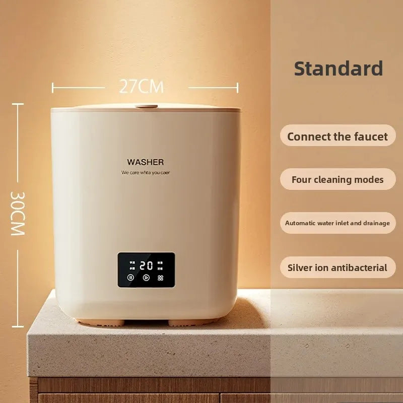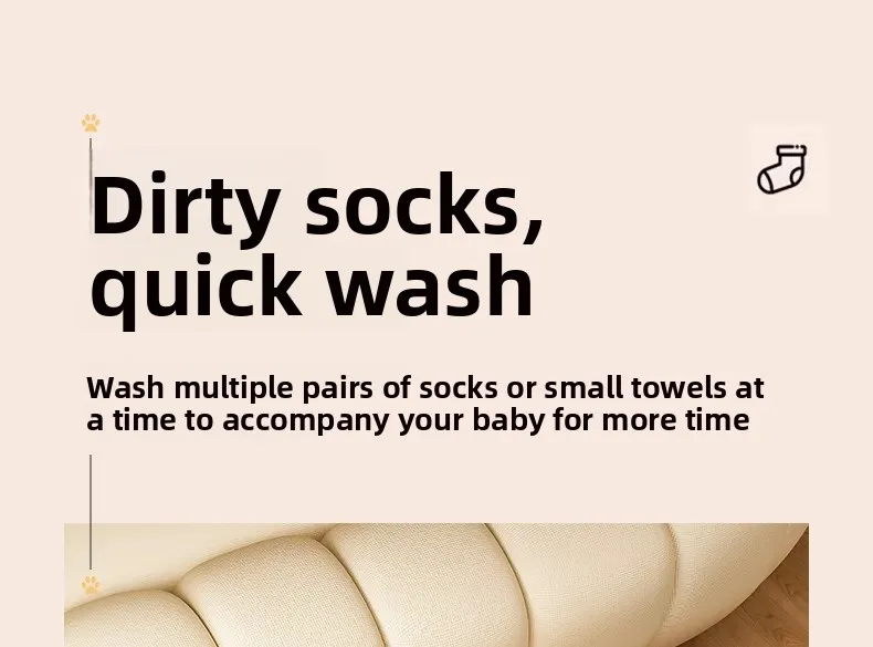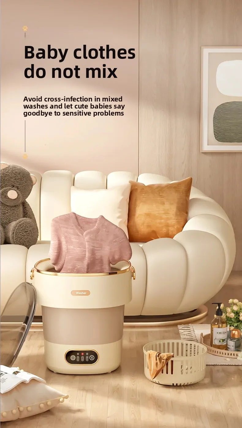 • Ultrasonic Technology : Equipped with ultrasonic technology, this mini washing machine efficiently cleans clothes, undergarments, and baby items without harsh vibrations.