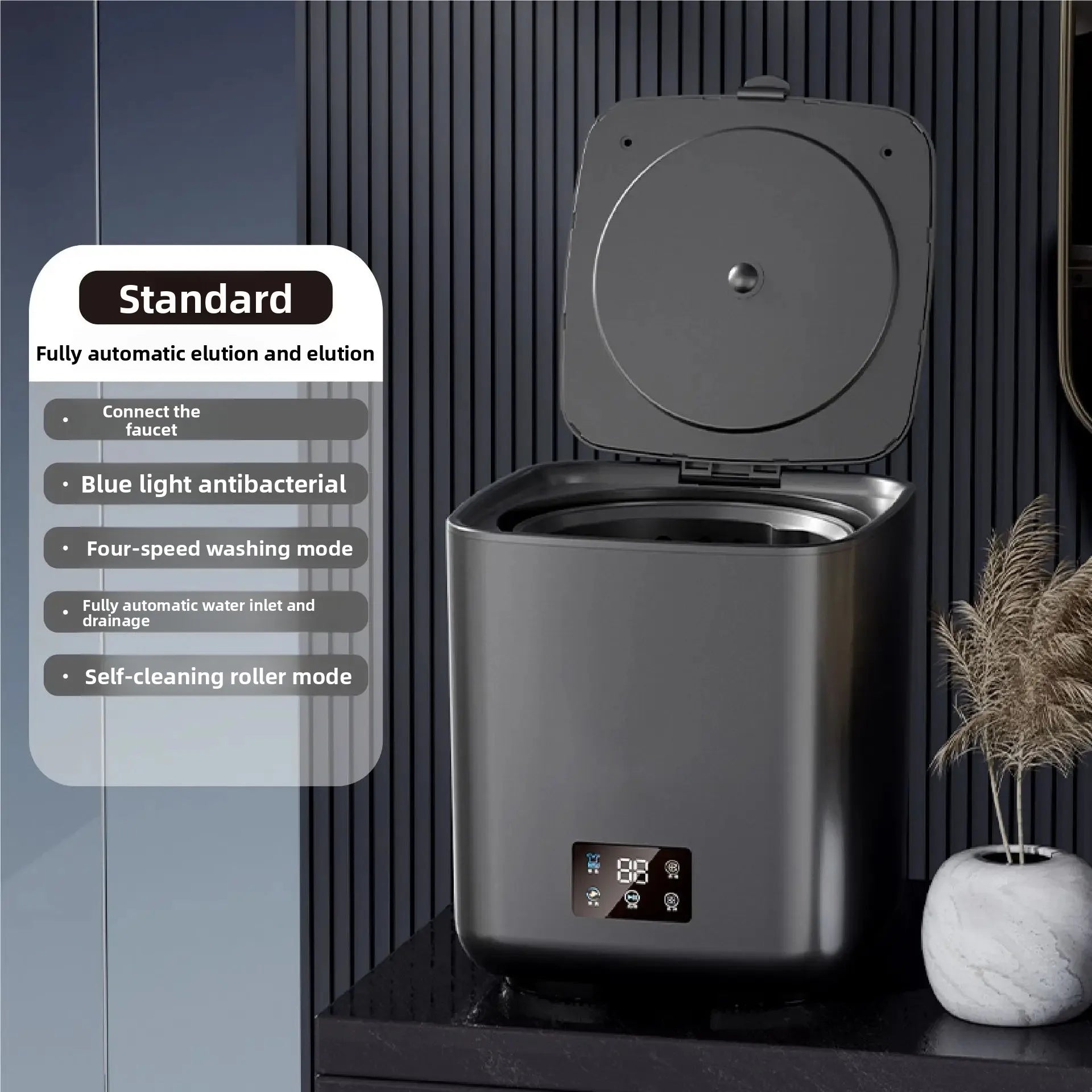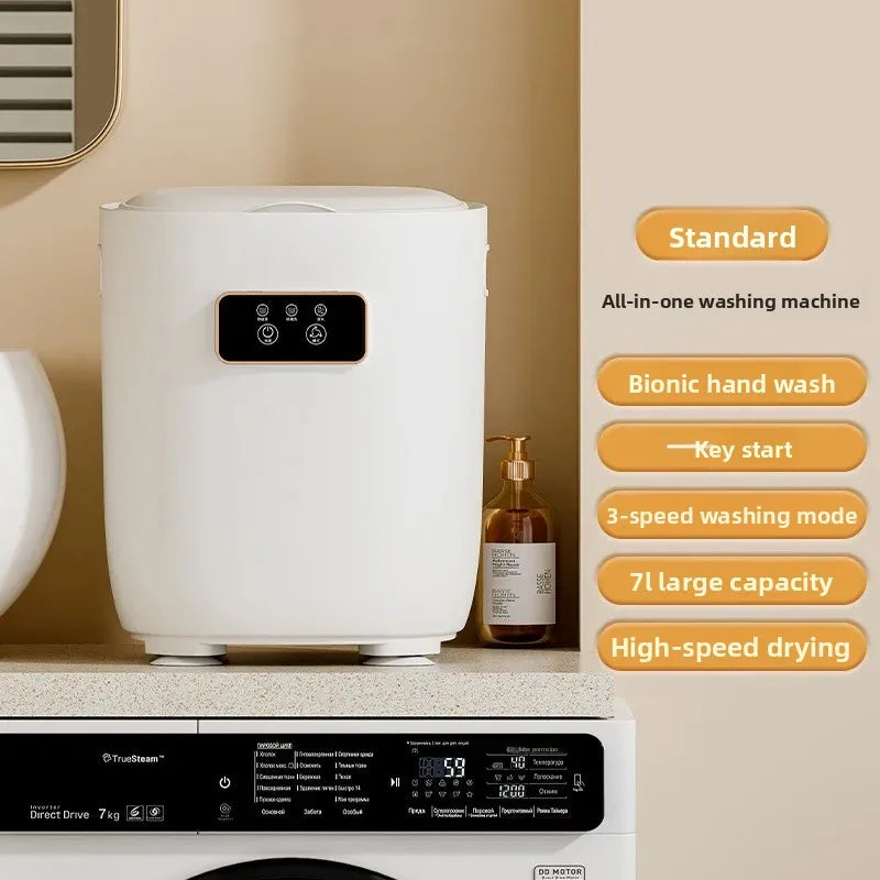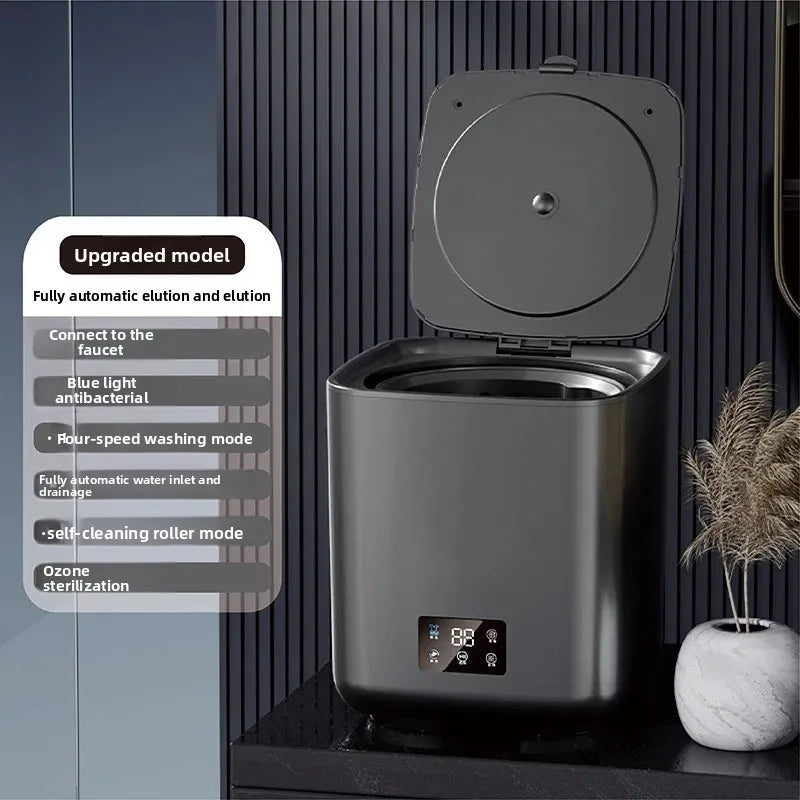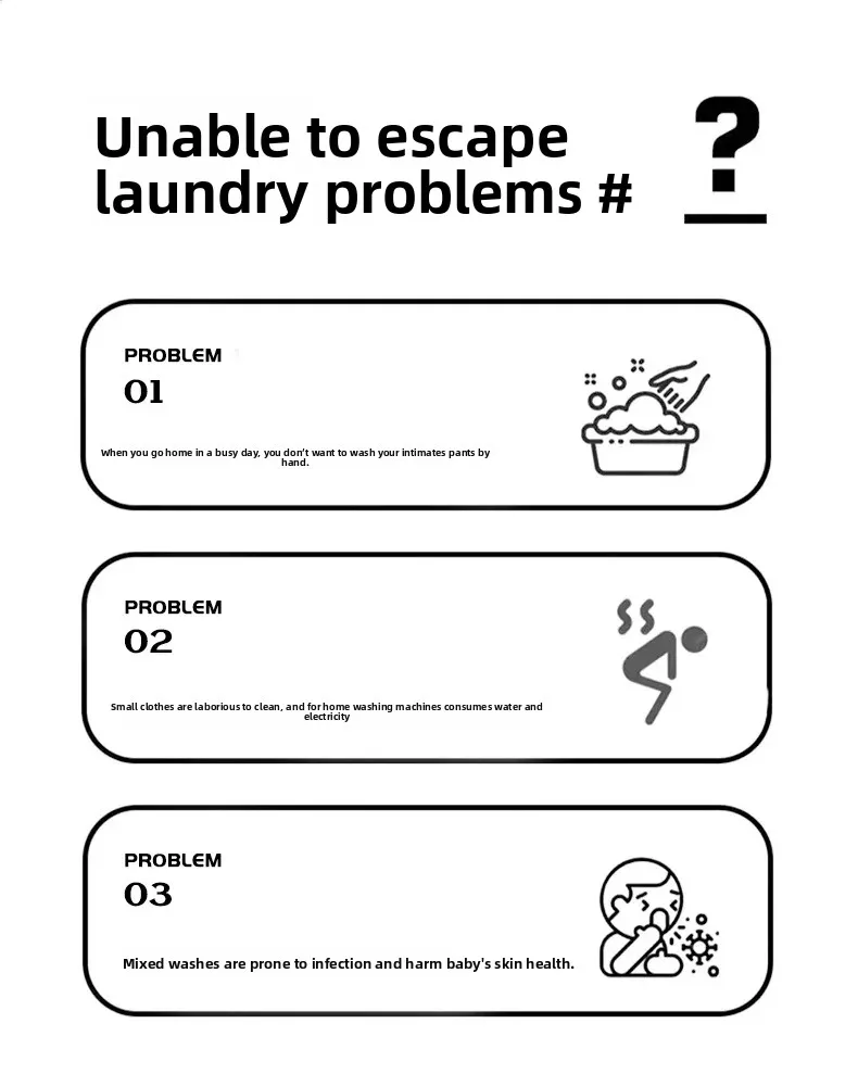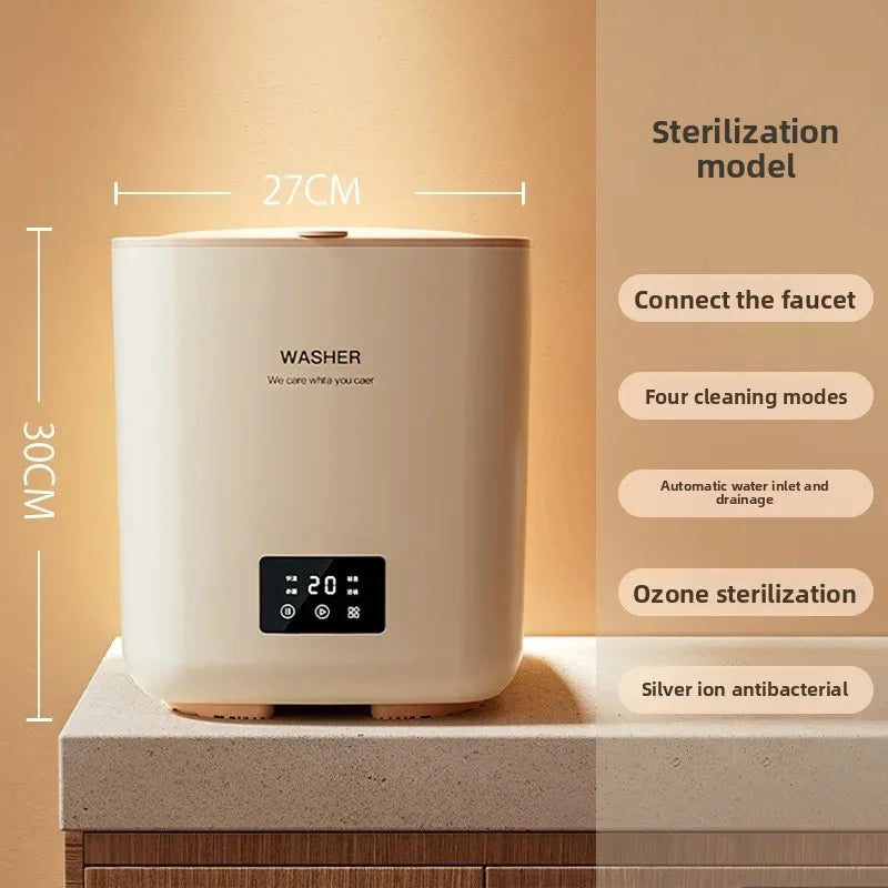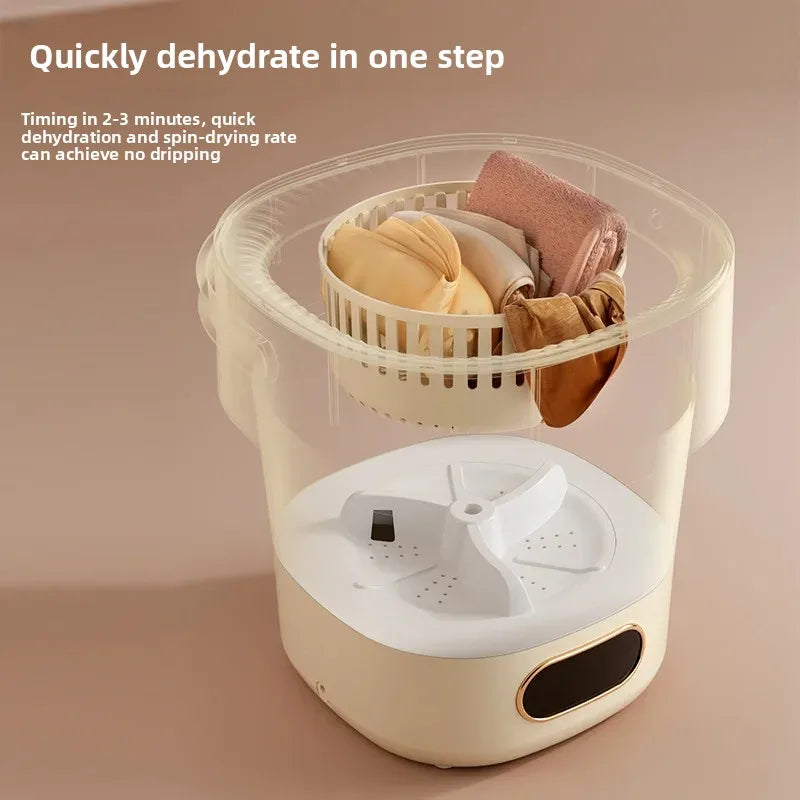 • Ultrasonic Technology : Equipped with ultrasonic technology, this mini washing machine efficiently cleans clothes, undergarments, and baby items without harsh vibrations.