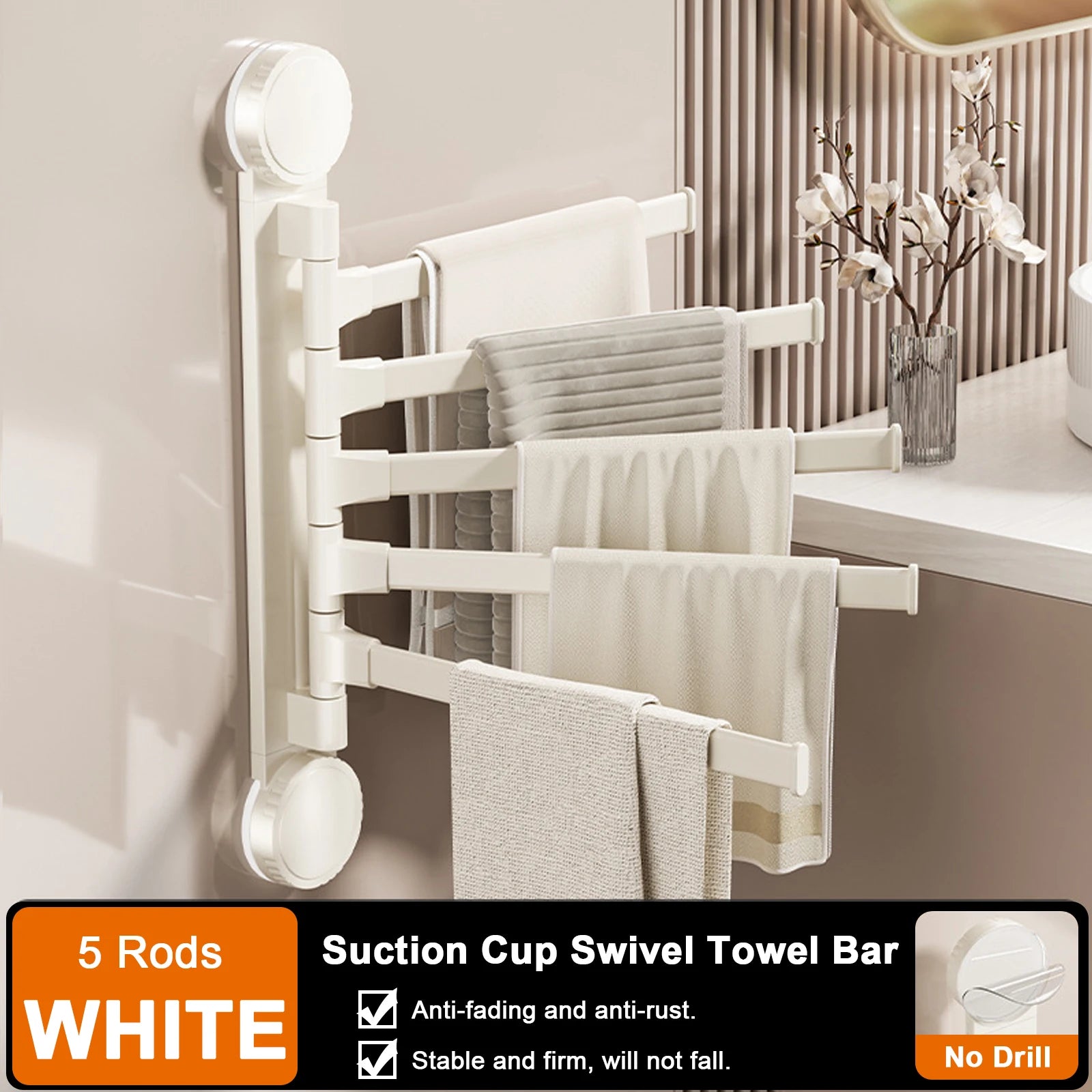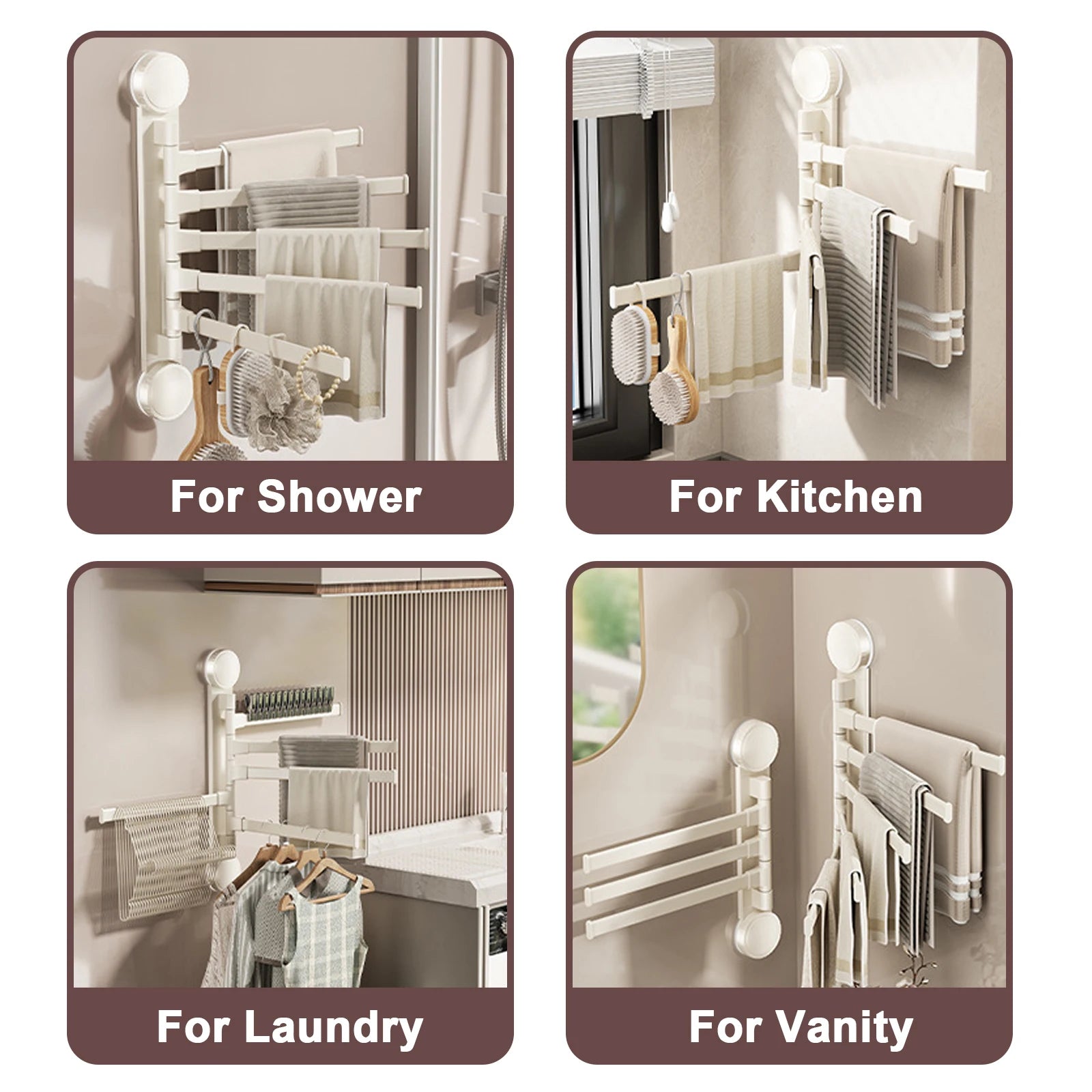 Suction Cup Towel Rack Rotatable Towel Holder Aluminum 2/3/4/5-Bar Towel Hanger Kitchen Bathroom Hanging Wall Mounted