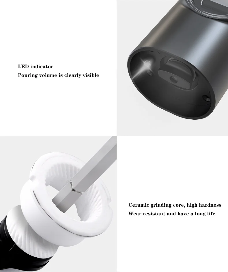 One-Hand Automatic Operation. Grind the spices automatically rather than twist repeatedly. The automatic salt and pepper grinder set is more convenient and effort-saving than traditional ones. Control the seasoning amount by the button. Separate the battery and spice container to prevent the spice powder from getting inside for a prolonged lifespan.