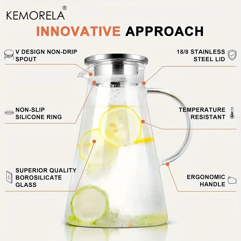 Water Jug Transparent Heat-Resistant Glass Cold Water Kettle and Cups Water Pot with Handle Large Capacity Office Household Jug