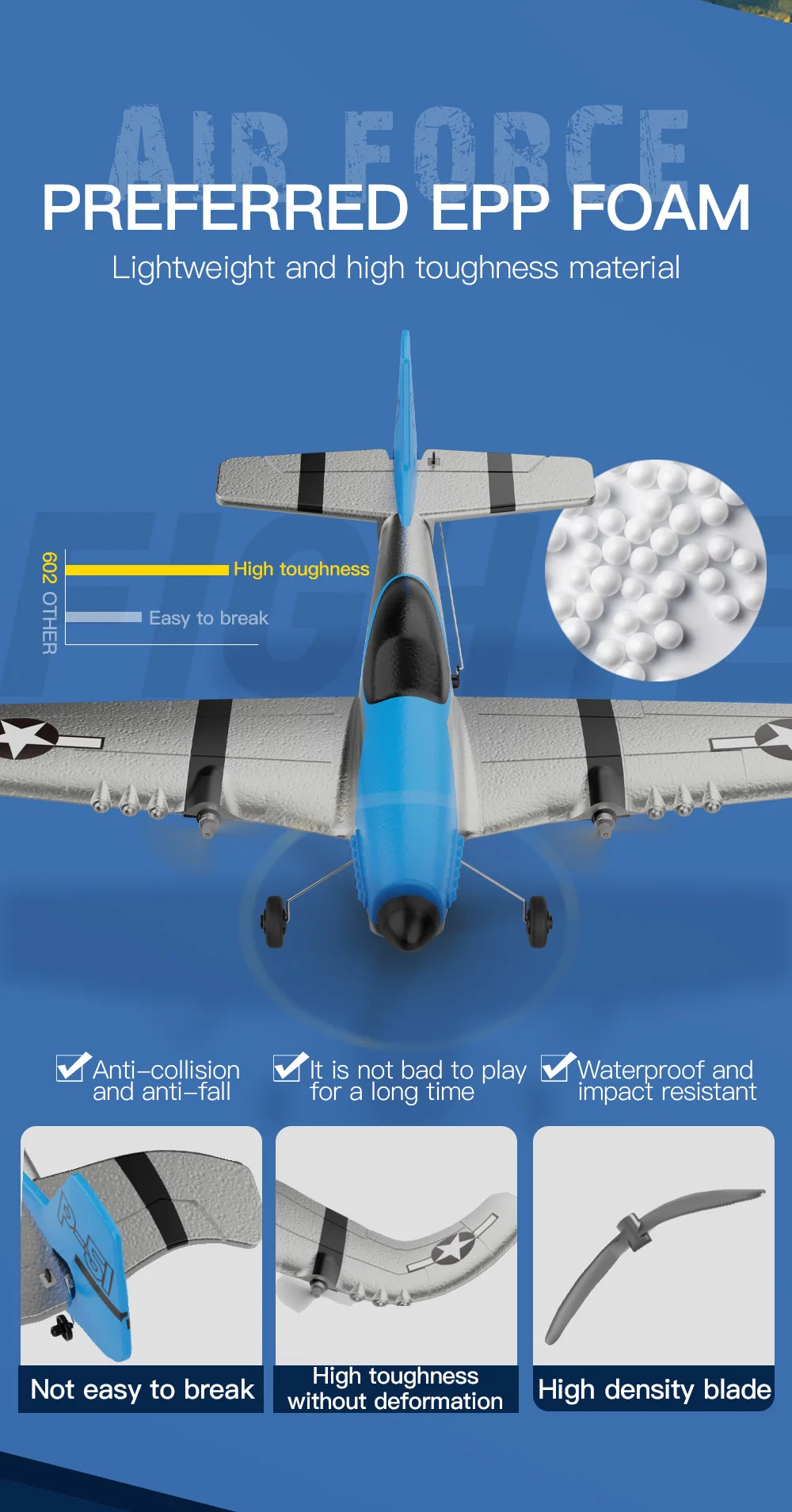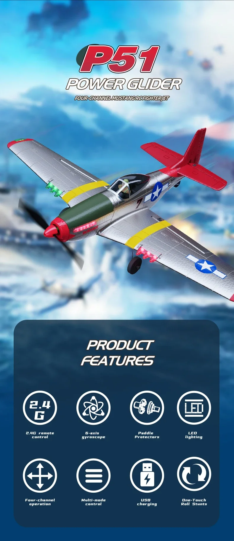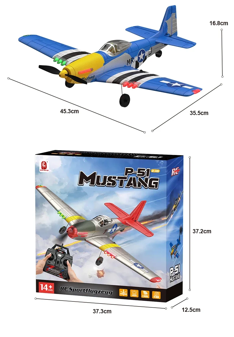 P51 Mustang Fighter 4CH Remote Control Aircraft Model Fixed Wing Aviation Model Aircraft 2.4G Electric Foam Glider Toys