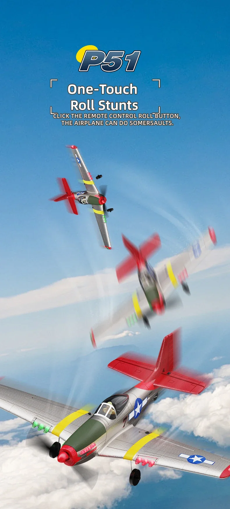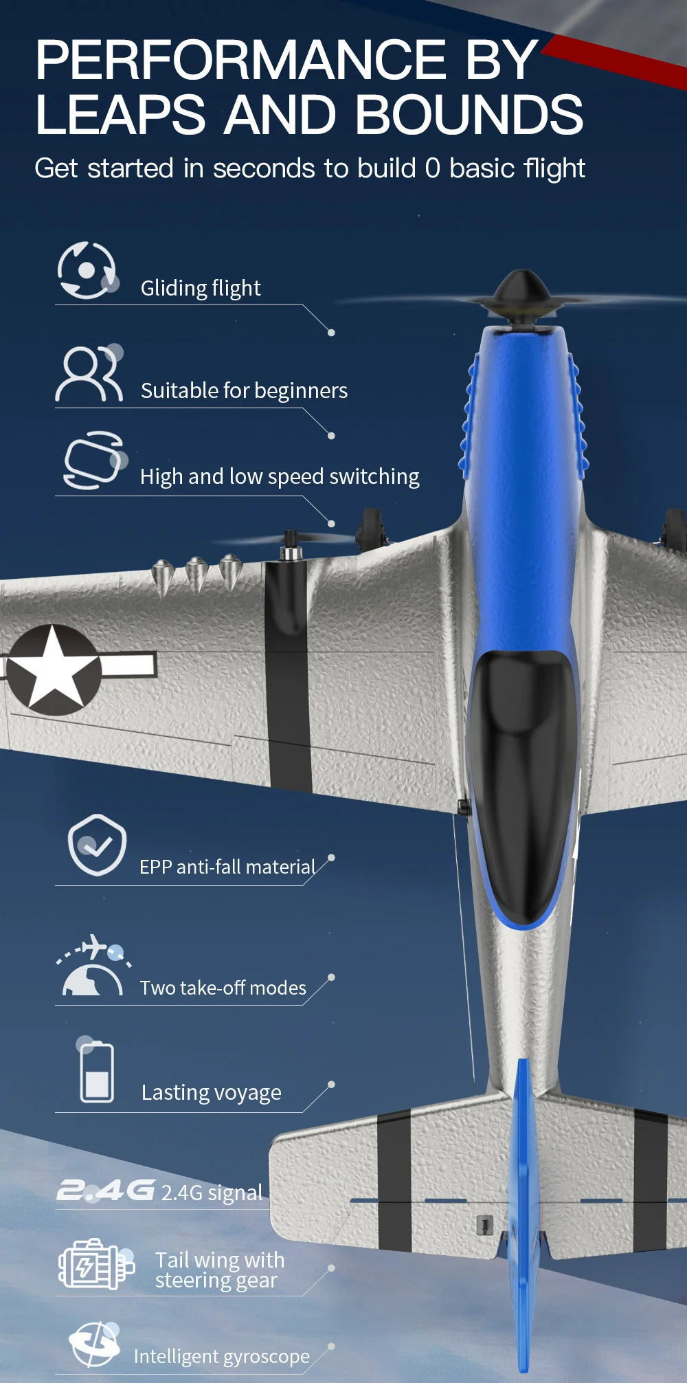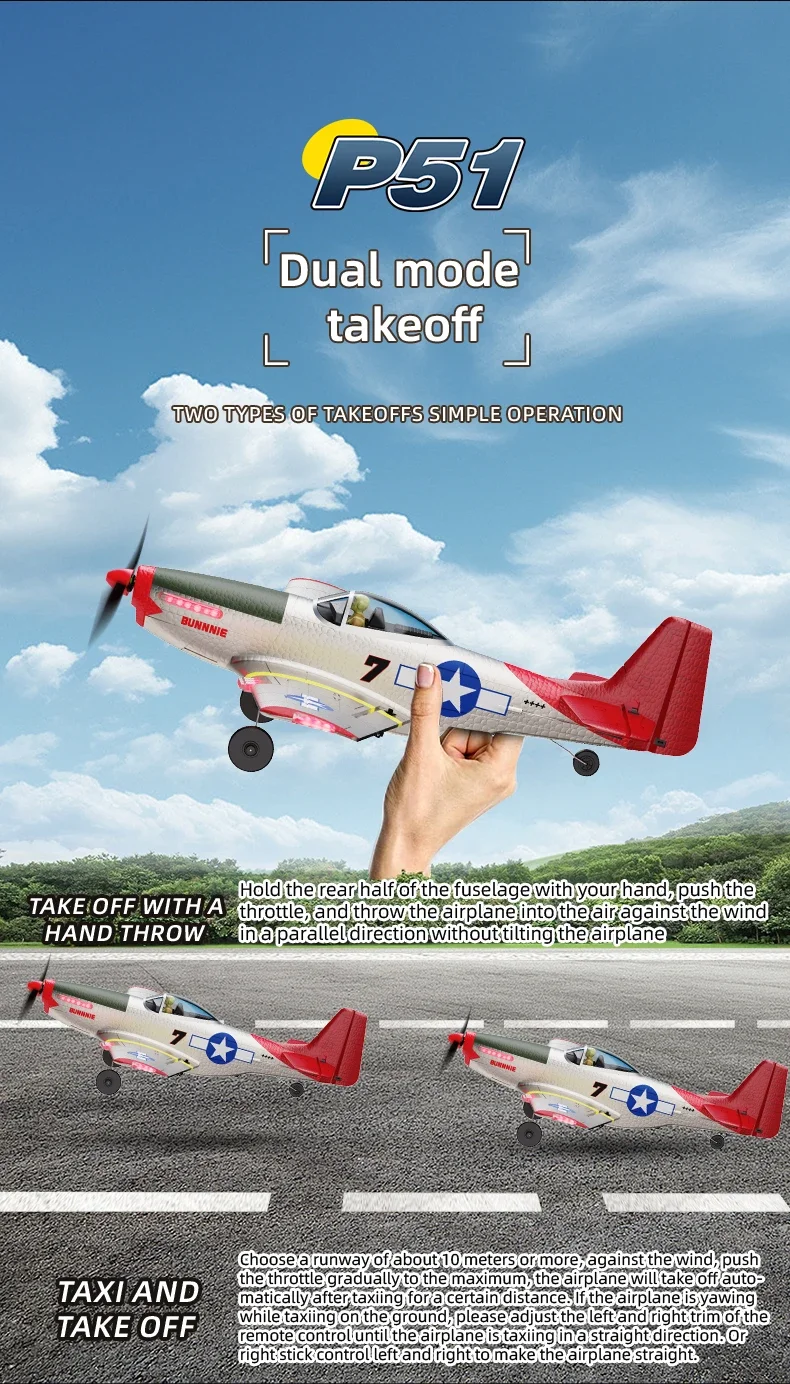 P51 Mustang Fighter 4CH Remote Control Aircraft Model Fixed Wing Aviation Model Aircraft 2.4G Electric Foam Glider Toys