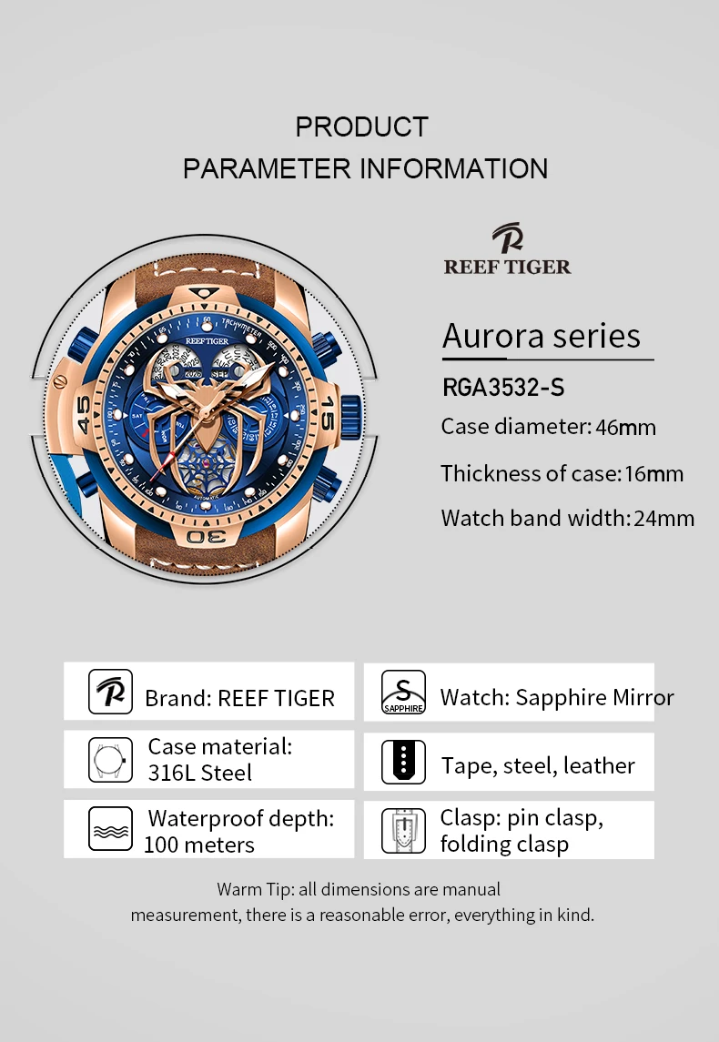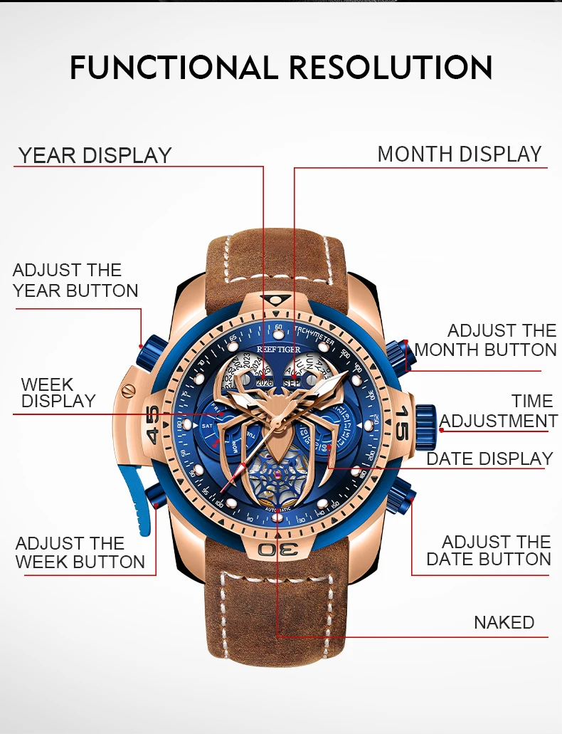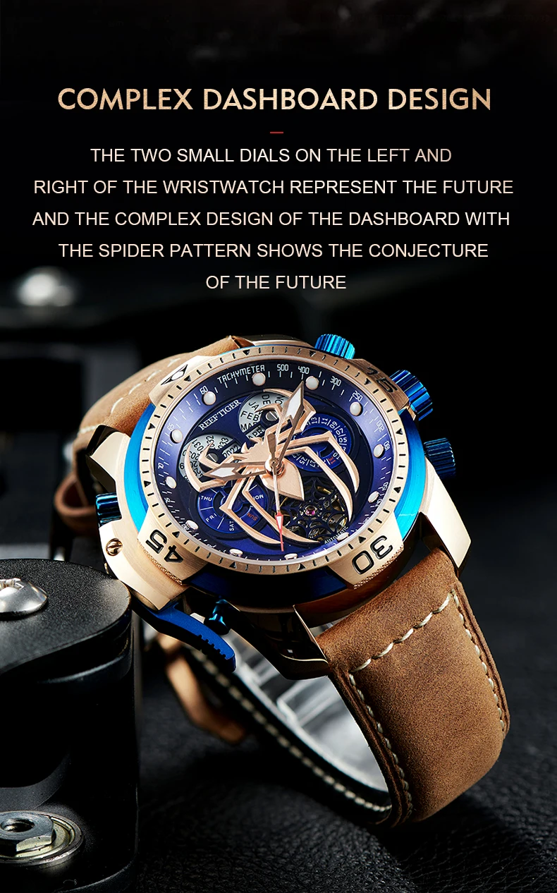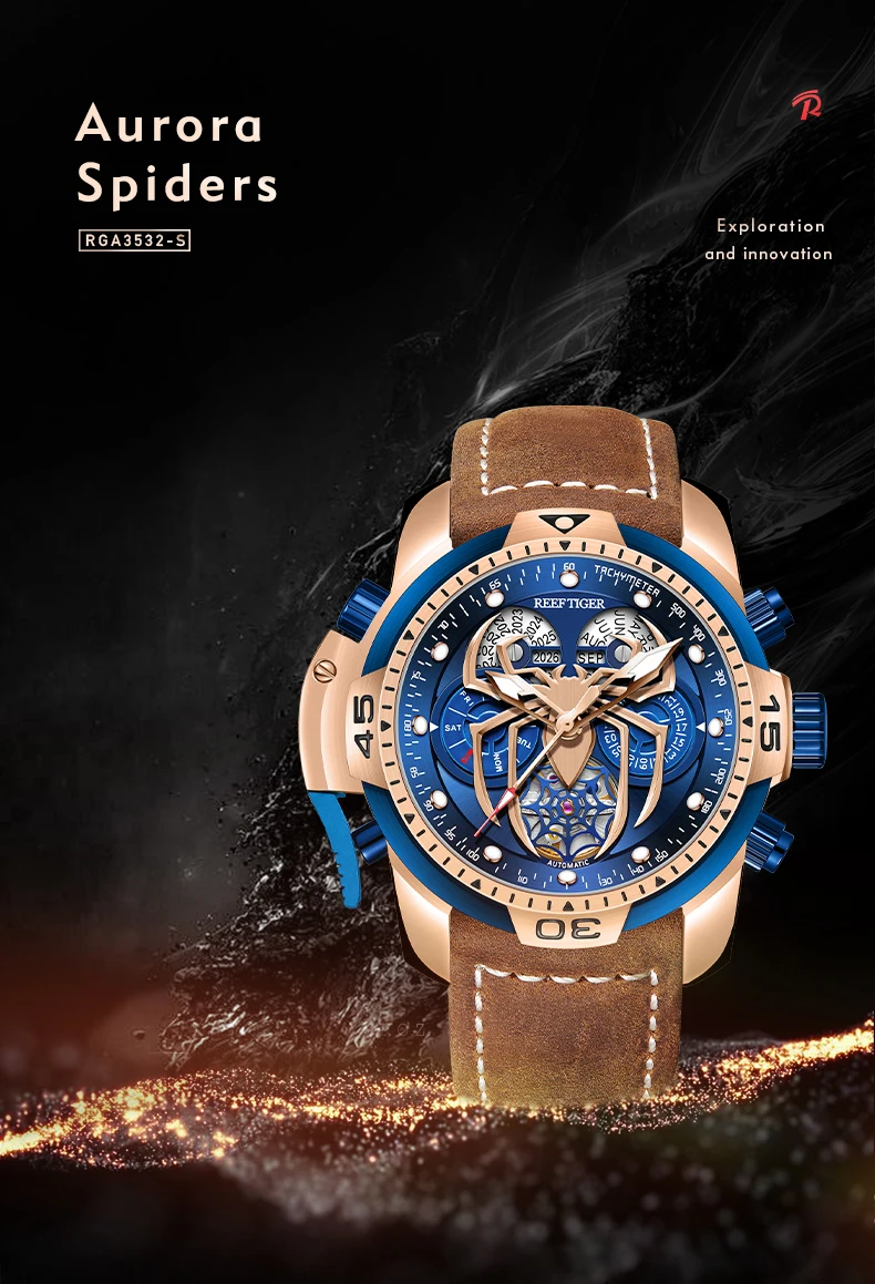 /Rt New Design Sport Automatic Watch Spider Dial with Year Month Perpetual Calendar Leather Watches RGA3532SP