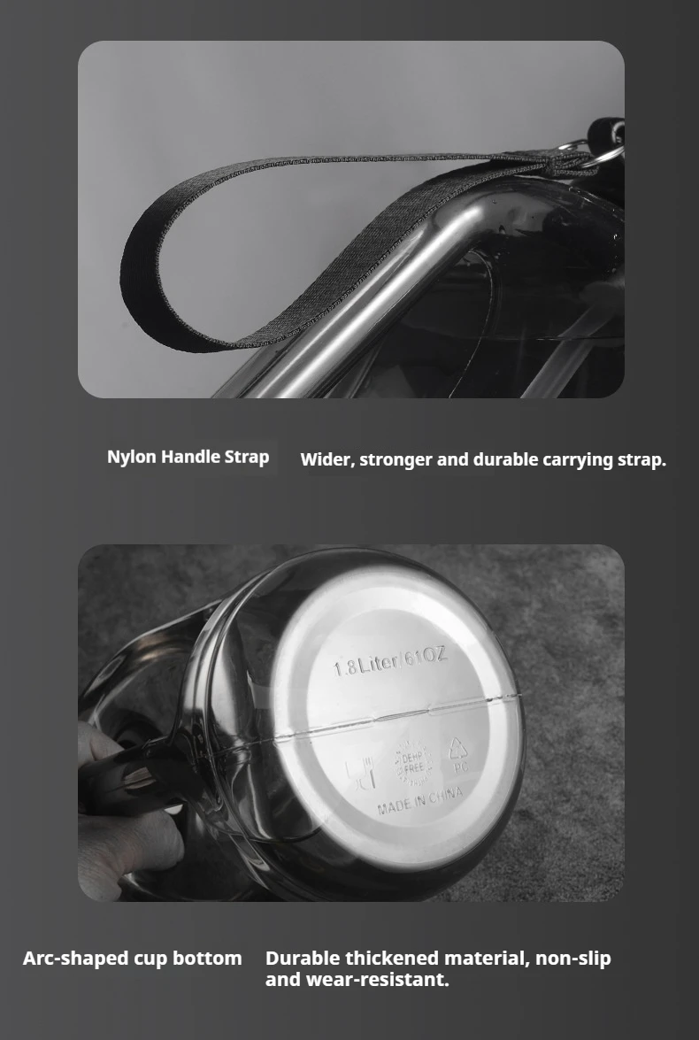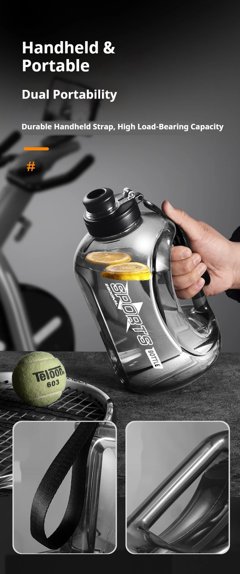 3. Easy to Carry: The water bottle is designed with a convenient hand strap and handle, you can easily carry it anywhere, perfect for outdoor sports, gym, daily drinking, etc.