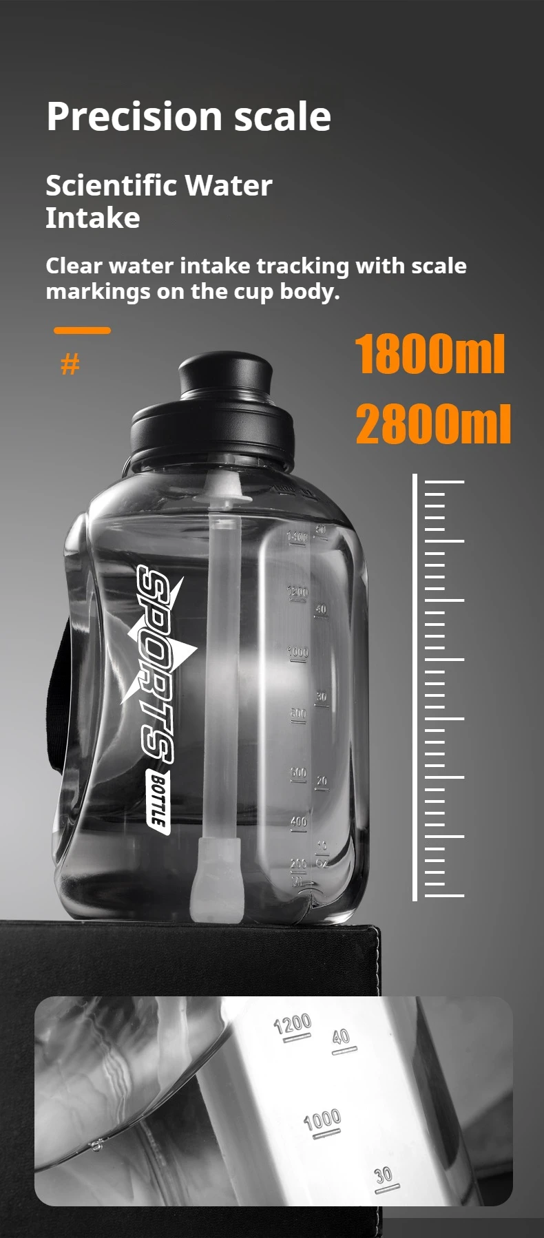 1.8L/2.8L Large Capacity Sport Water Bottle Men'S Fitn Cup with Straw Portable Outdoor Big Belly Cup Durable Water Jug for Men