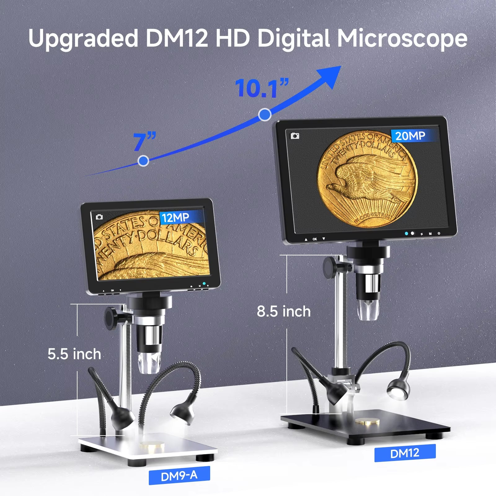 【10.1 IPS Screen】Experience crystal-clear visuals and vibrant colors on the expansive DM12 digital microscope 10.1-inch IPS screen, providing an immersive viewing experience for detailed observations.