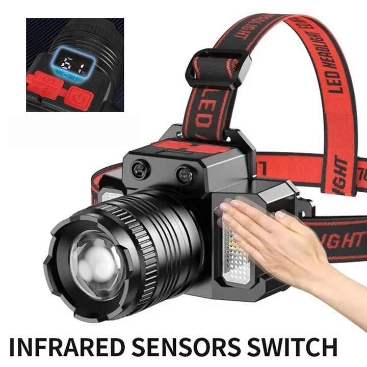 1500LM High Power LED Headlamp COB Head Flashlight with 7500Mah Built-In Battery USB Rechargeable Fishing Camping Lantern Torch
