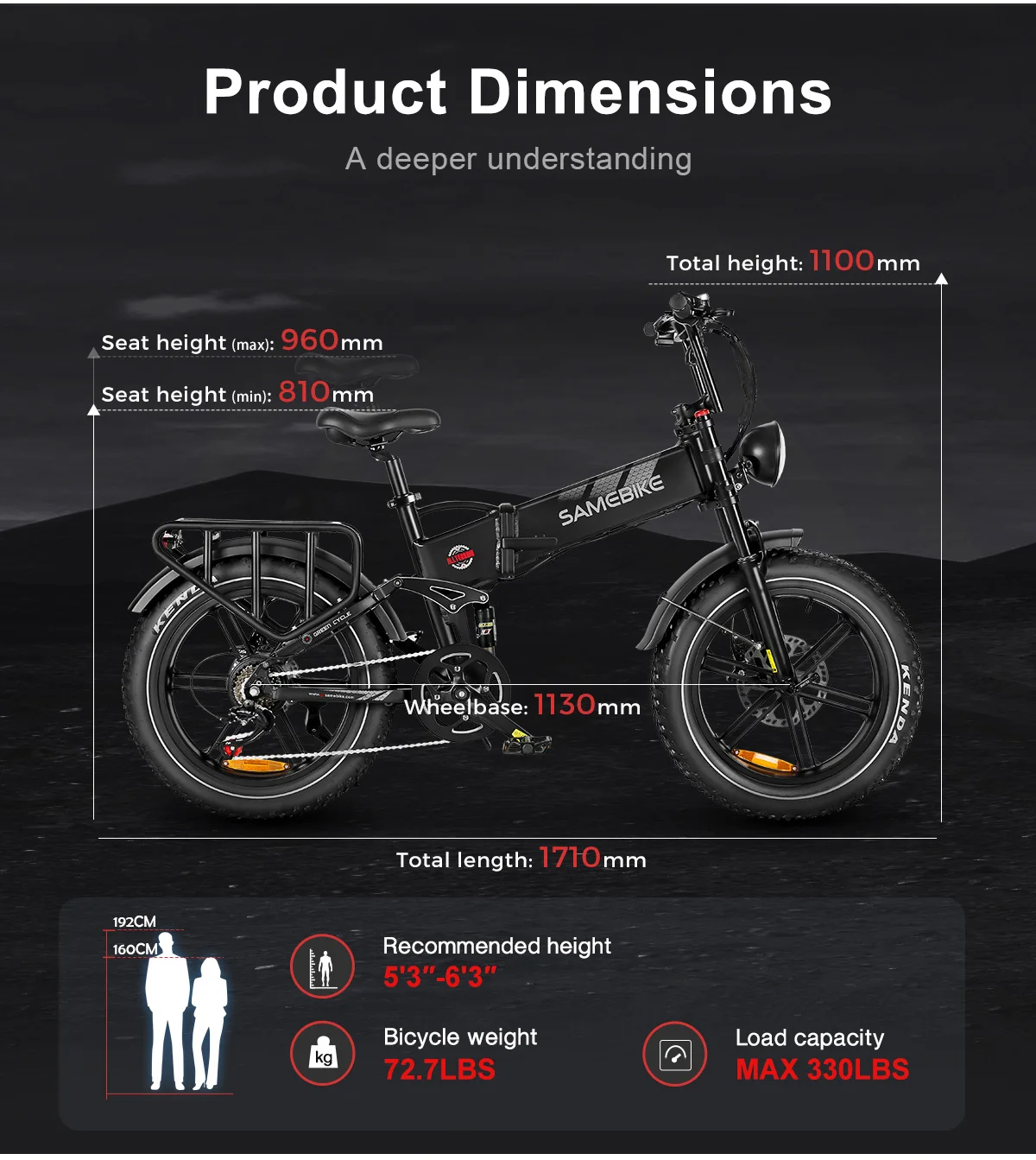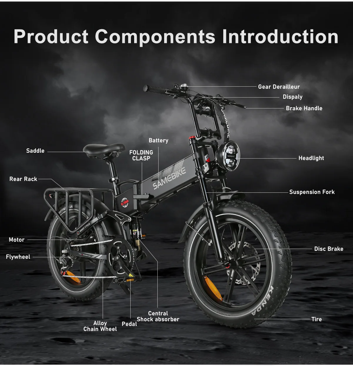 17Ah 250W1200D Folding Rear Drive Fat Electric Bike E-Bike Dual Suspension