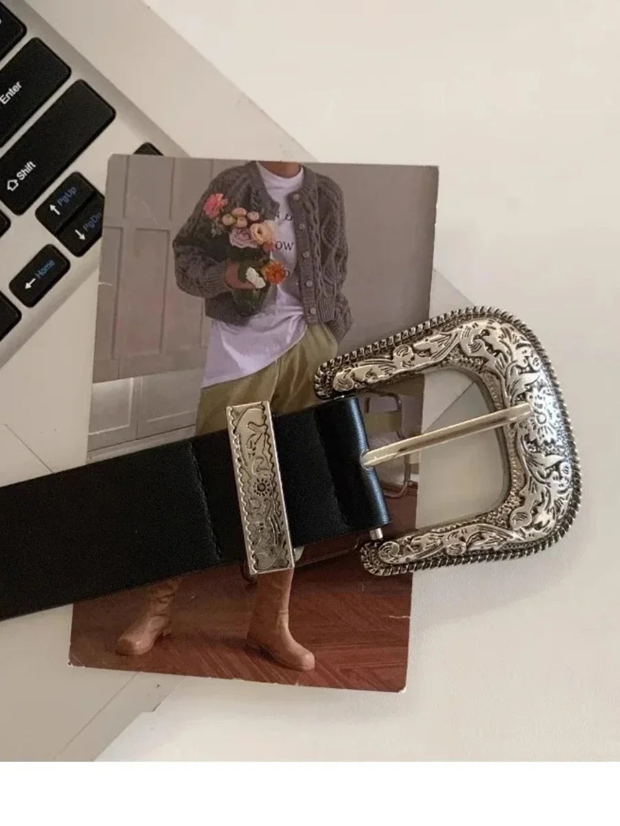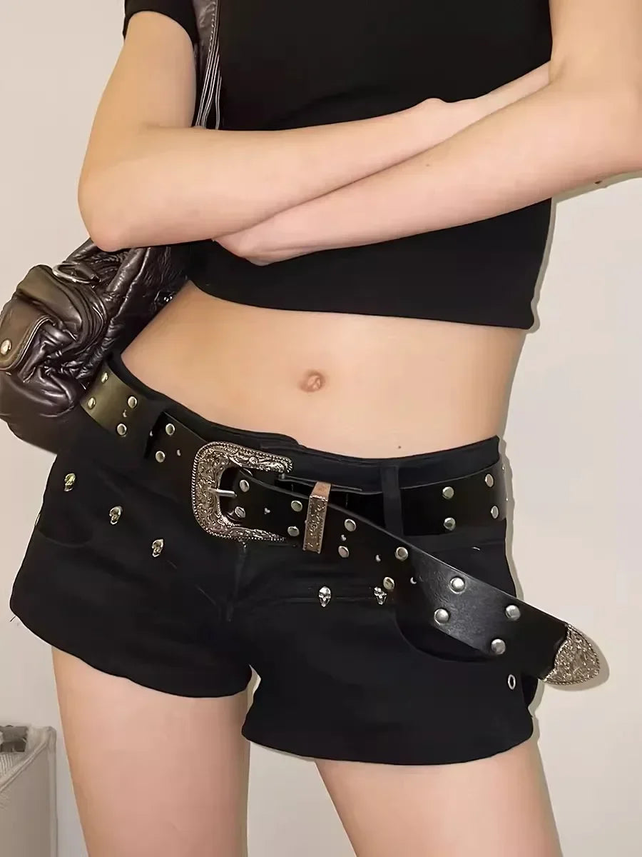 1PC New Black Fashion Retro Rivet Belt Women'S Fashion Personality High-End with Jeans Belt Trend Style Women Belt