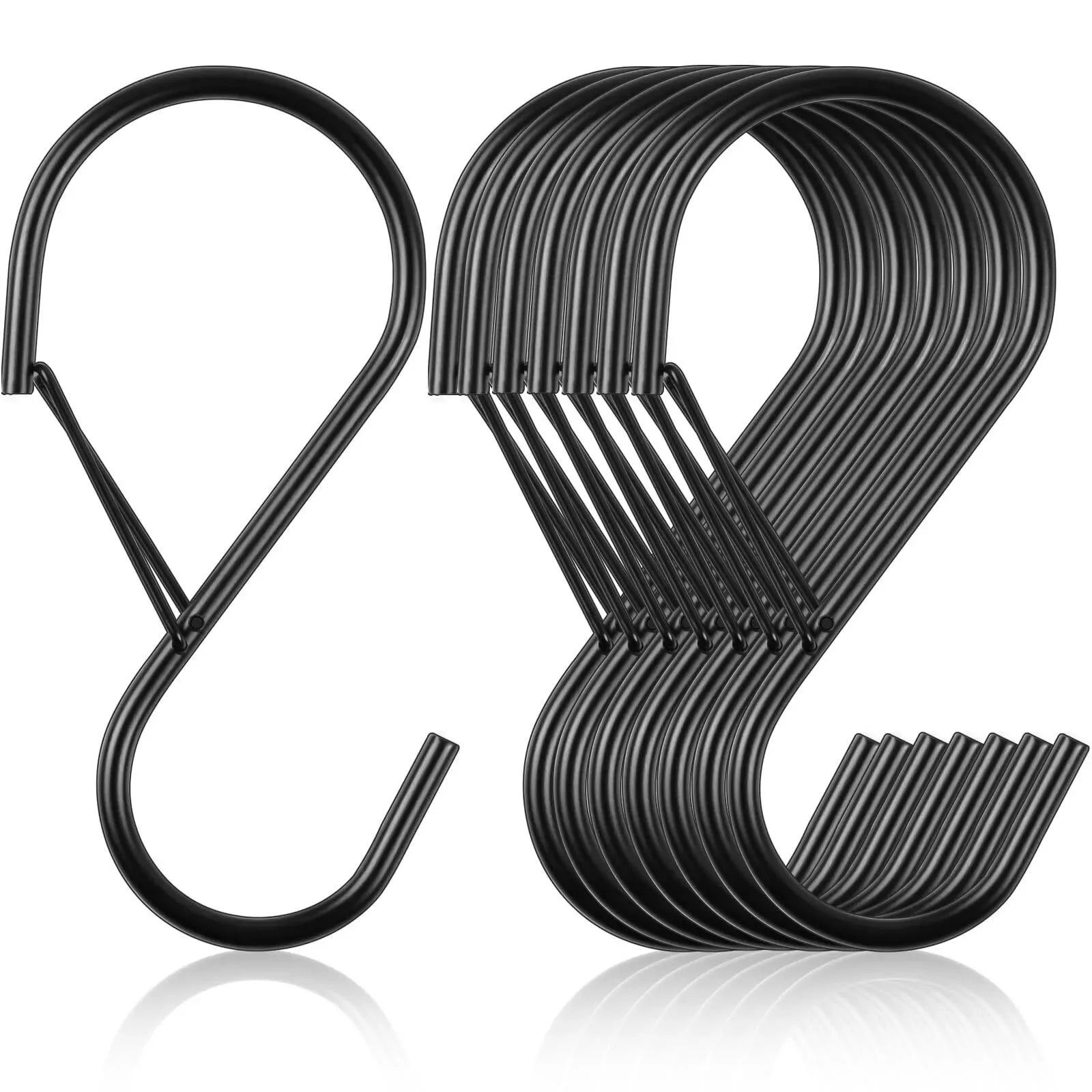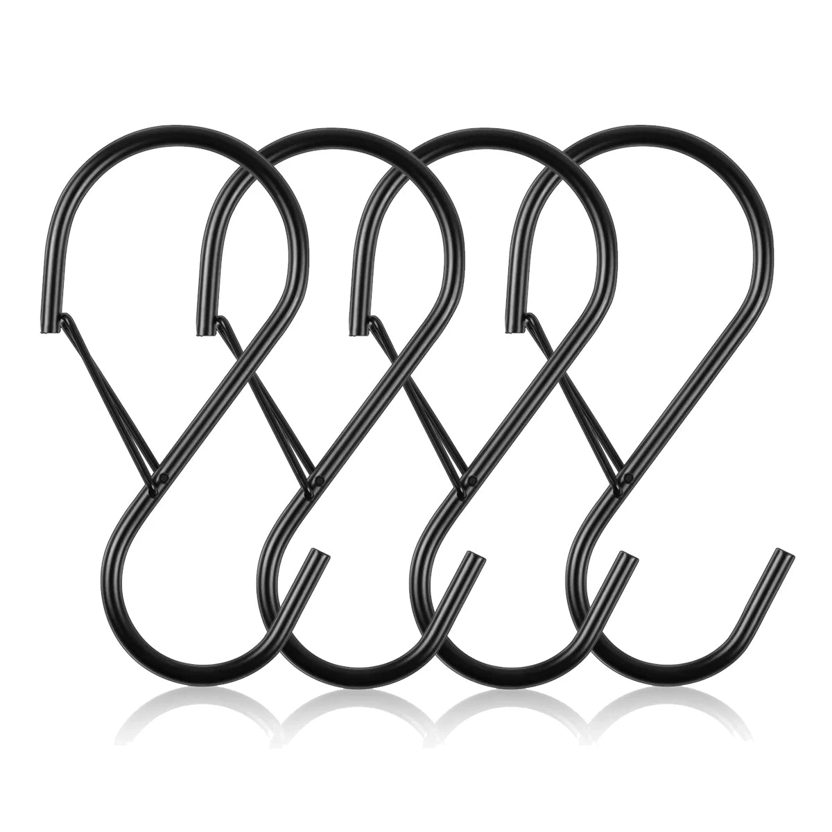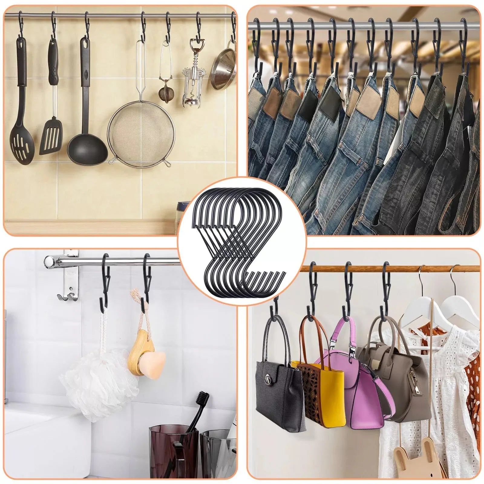 Wide Application: The black s hooks can be easily used in kitchen, bedroom, bathroom, garden, patio, pergola, garage, wardrobe, closet rods, office, indoor and outdoor, etc., for hanging plants, bird feeders, flower baskets, wind chimes, lanterns, kitchen utensils, pots, pans, mops, spoons, clothes, jeans, towels, scarves, belts, ties, bags, handbags, coffee mugs, tools, etc. It can save our space and make our room organized and accessible.