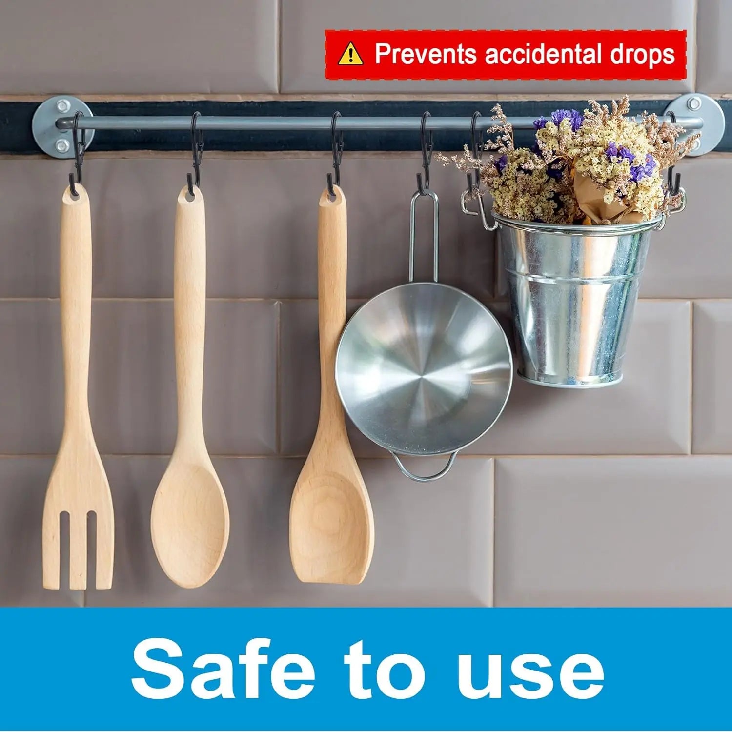 Easy To Use: Closet Hooks is easy to install and remove for our indoor and outdoor use, these s hooks do not require the use of tools, nails, screws or adhesives, the black s hooks is easy to hang on existing items.