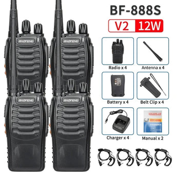 2/4PCS BF-888S V2 Walkie Talkie Dual Band Portable Long Range UHF 400-470Mhz USB/EU/US Ham Two Way Radio for Hunting