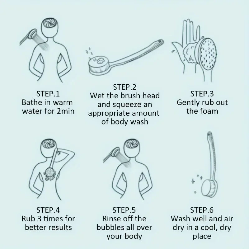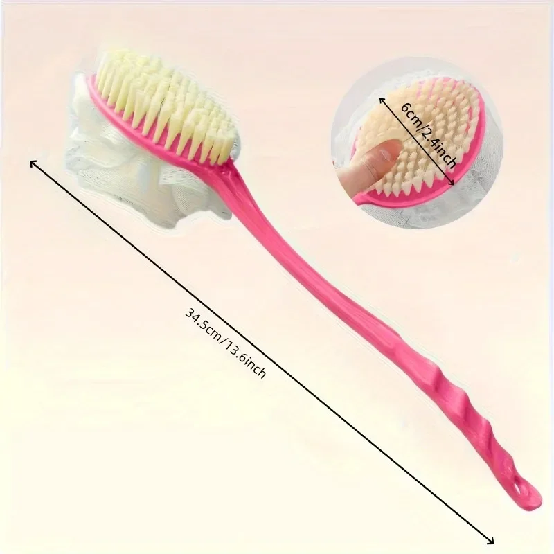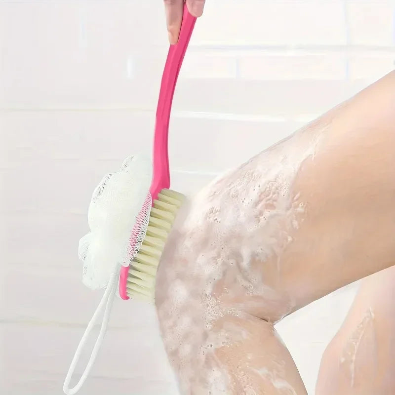 2-In-1 Bath Soft Back Brush Gentle Exfoliating Body Brush Bath Shower Sponge Scrubbing Brush Bathroom Shower Cleaning Tool