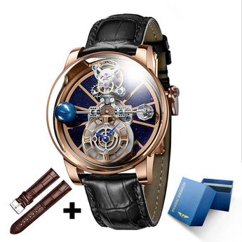 2023 Watch Men Golden Blue Celestial Roulette Quartz Watches Man for Leather Business Men Watch Adjustable Time