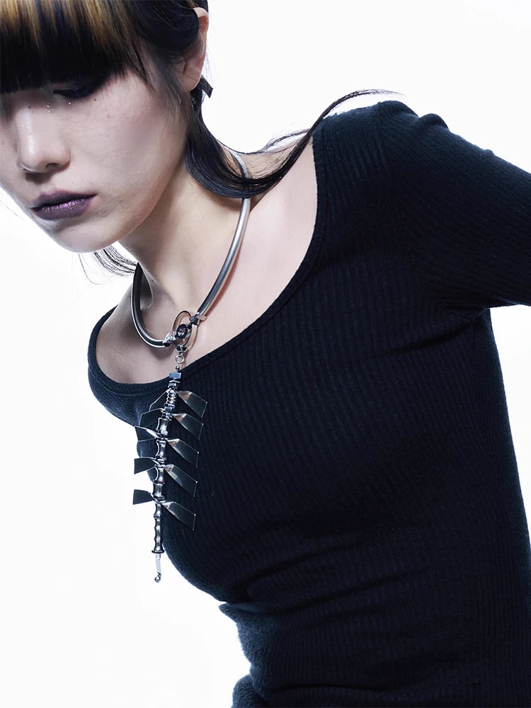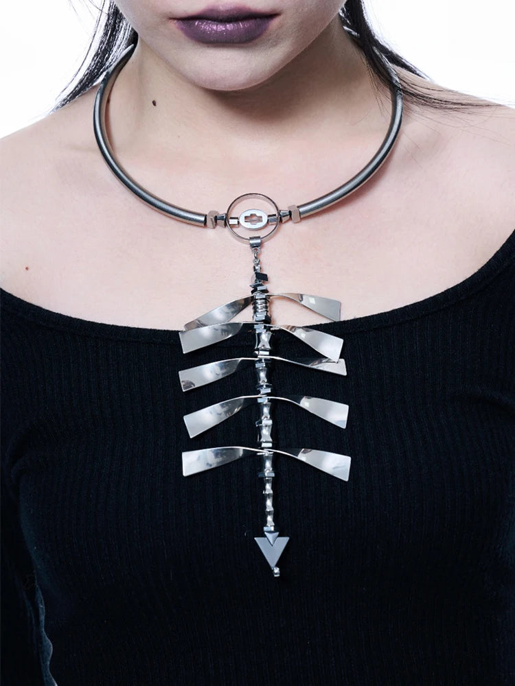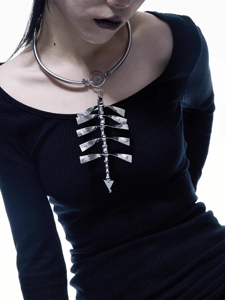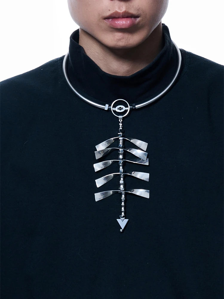 2024 New Ultra Heavy Industry Spine Necklace Alloy Cyberpunk Style Men'S and Women'S Jewelry Party Gift