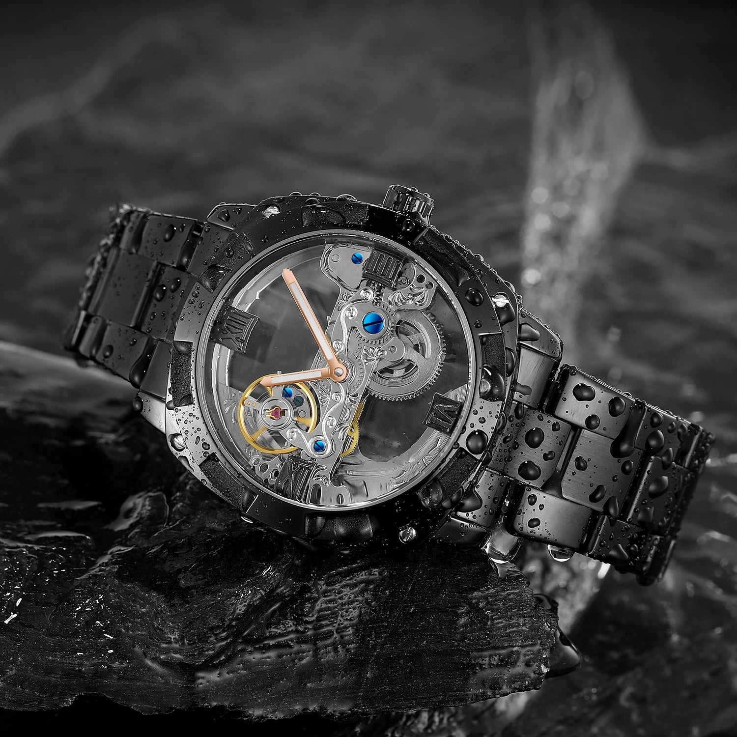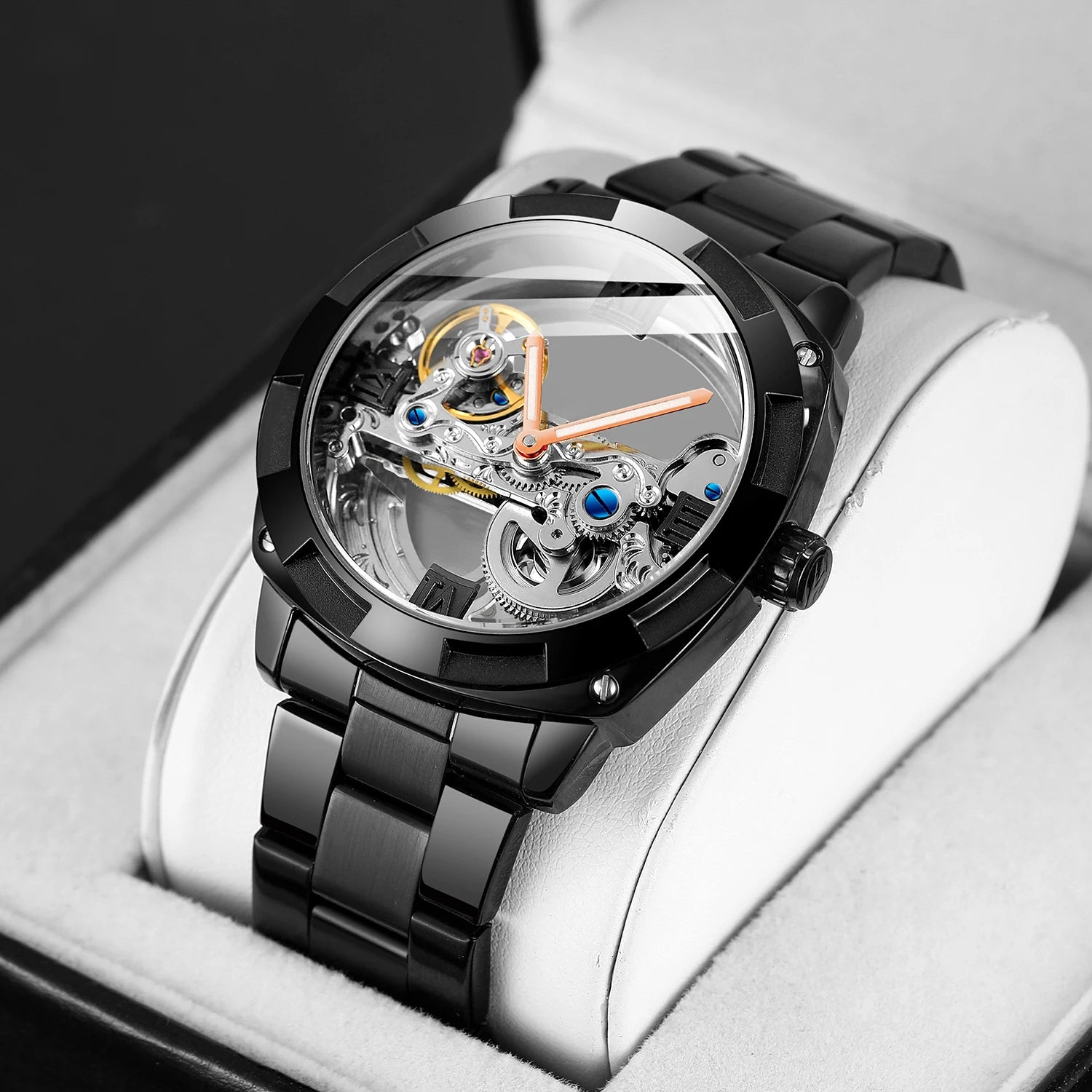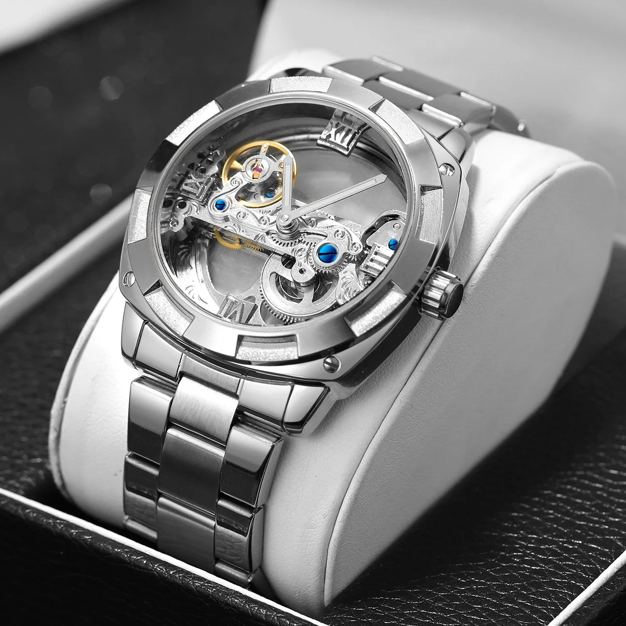 2024Top Brand Luxury Stainless Steel Skeleton Tourbillon Automatic Movement Men Watch Mechanical Waterproof Luminous Wrist Clock