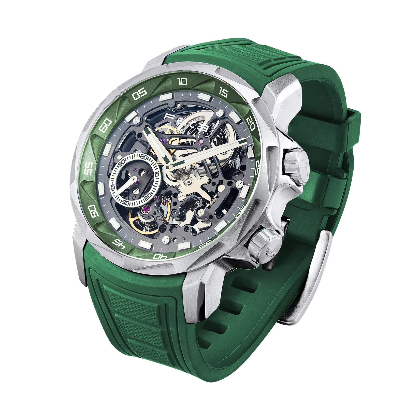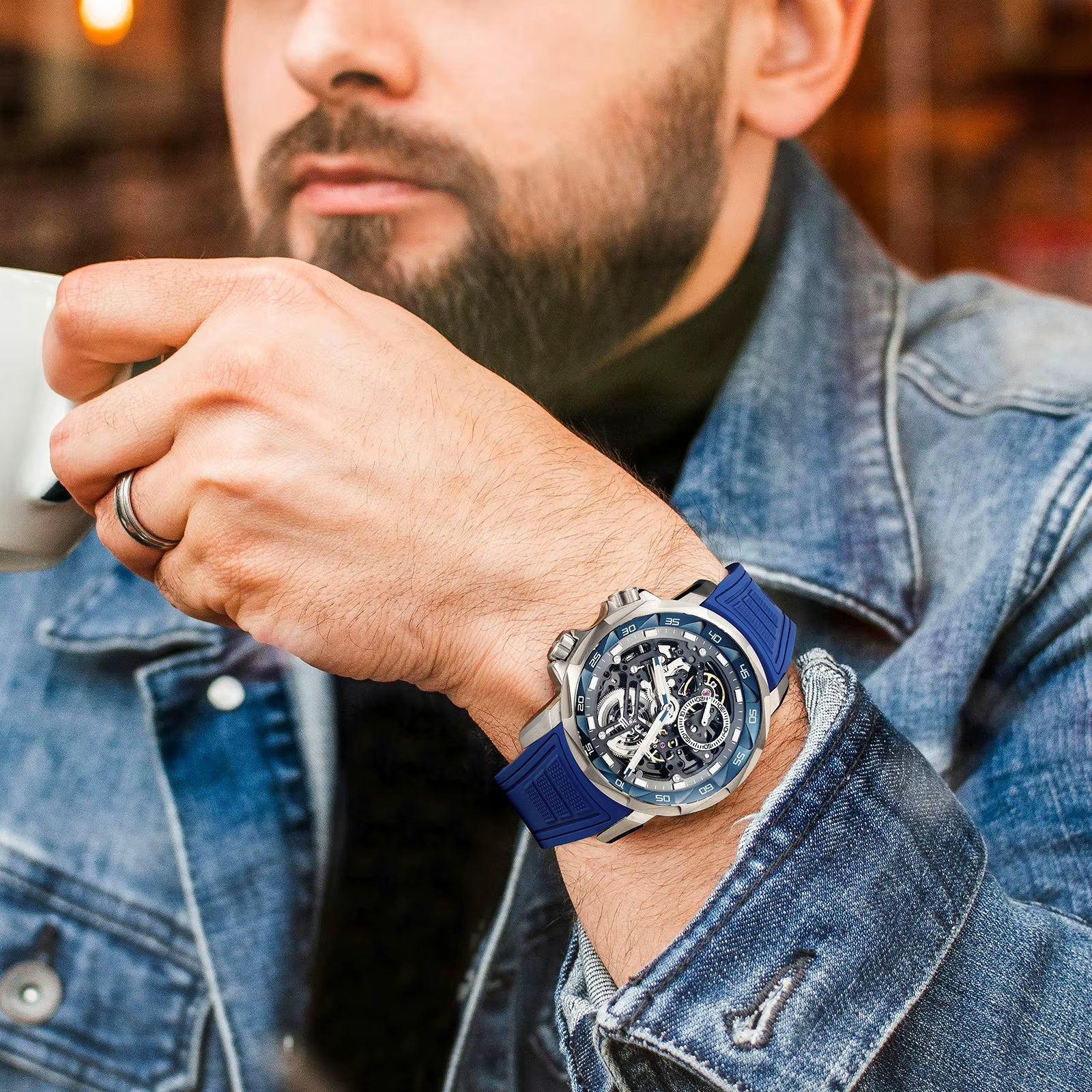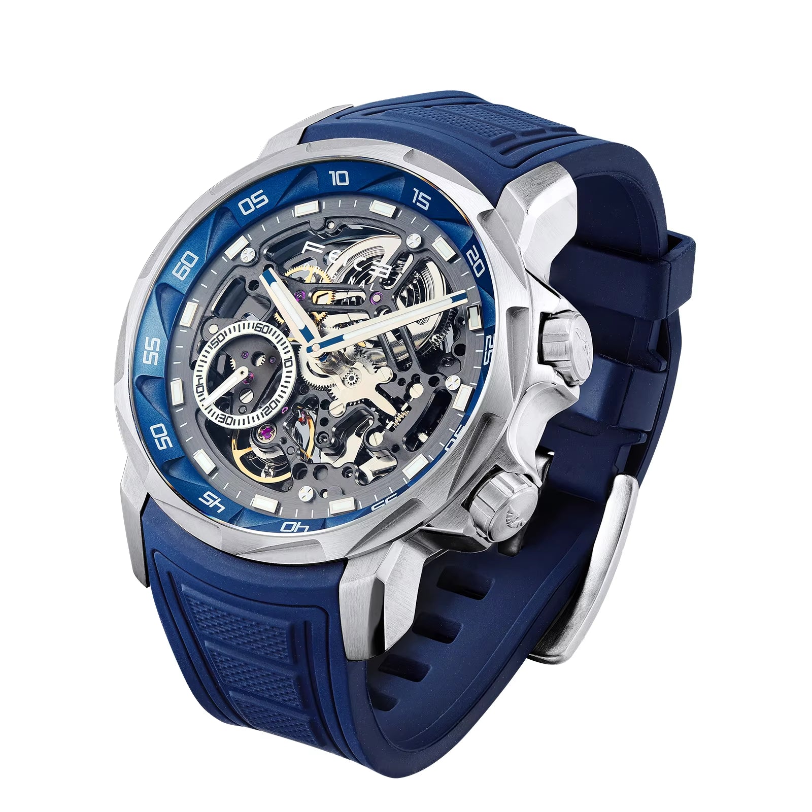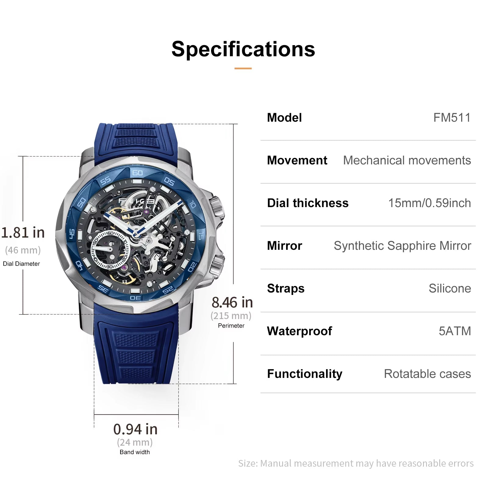 ⌚The self-winding movement, an automatic mechanical watch, does not require a battery, but is powered by the shaking of the wrist and can provide up to 35 hours of power at full capacity. If the energy is insufficient, the watch will work slowly or show large deviations.