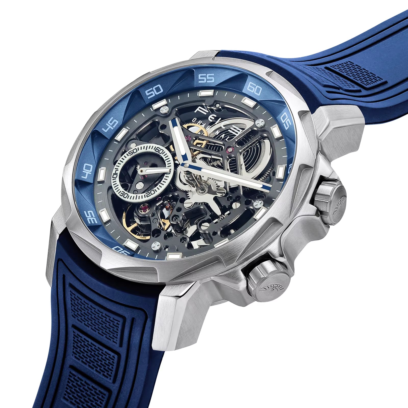 ⌚The ‘turbine’ activation device, the rotatable storm vortex case, a blend of classicism and innovation, is polished in 360°; it is adorned with three-dimensional time scales.