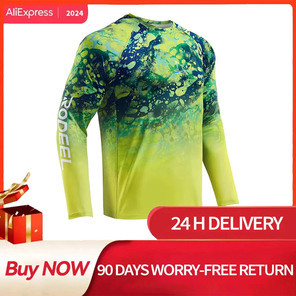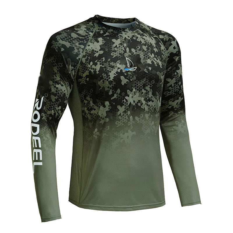 FEIYUE Men'S Sun Protection T-Shirts Camouflage UPF 50+ Long Sleeve Quick Dry Breathable Hiking Go Fishing Shirts Uv-Proof TOPS