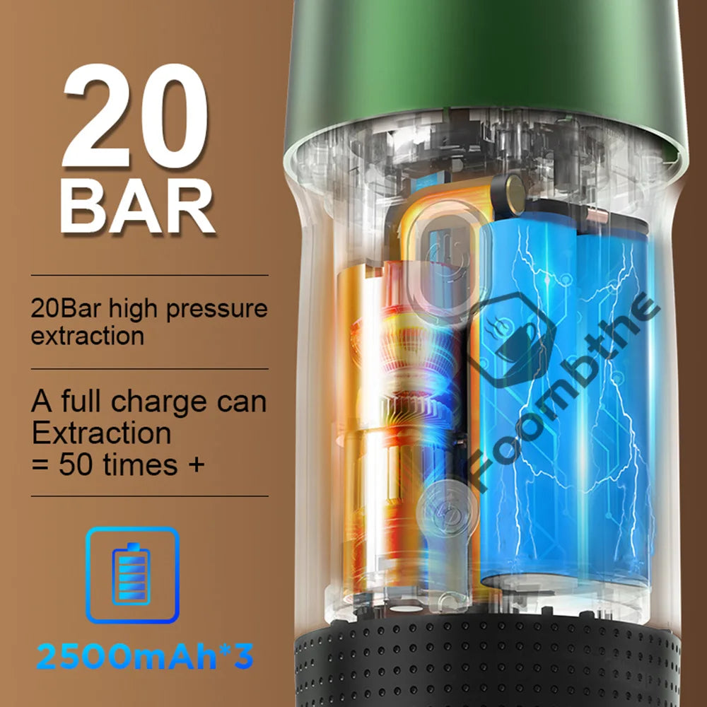 Foombthe Electric Portable Coffee Machine Italian Espresso Machine for Car & Home 3-In-1 Capsule Powder Travel Coffee Maker