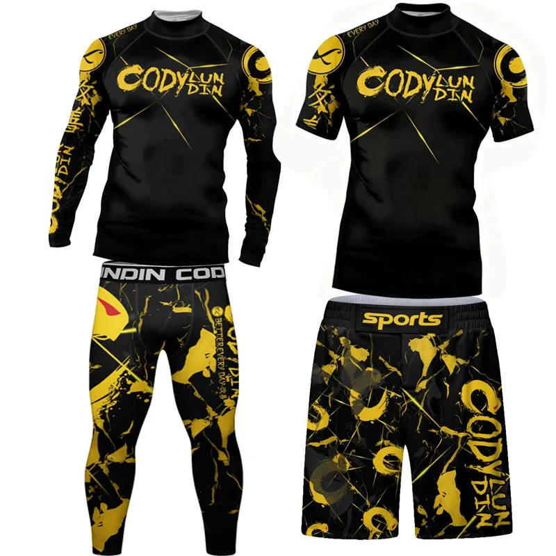 New Jiu Jitsu Rashguard MMA T-shirt +Pants For Men 4PCS/Set Brazilian Grappling Bjj Boxing Rash Guard Sport Clothing Gym Shorts